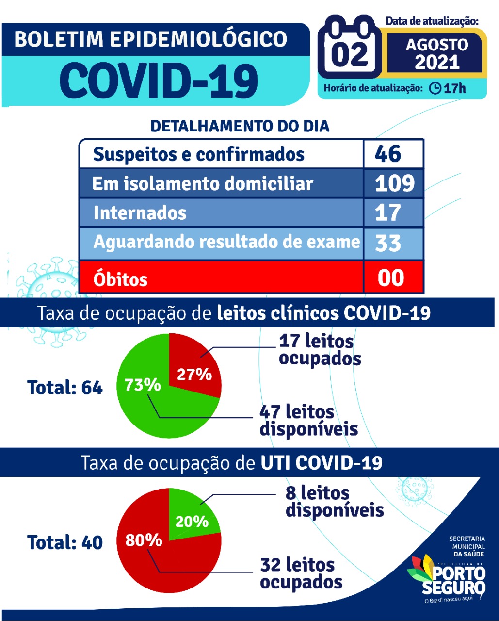 Porto Seguro hoje tem 23.445 pessoas recuperadas, totalizando um percentual de 98,6% entre os suspeitos e confirmados de COVID-19, sendo 203 óbitos desde março/ 2020.