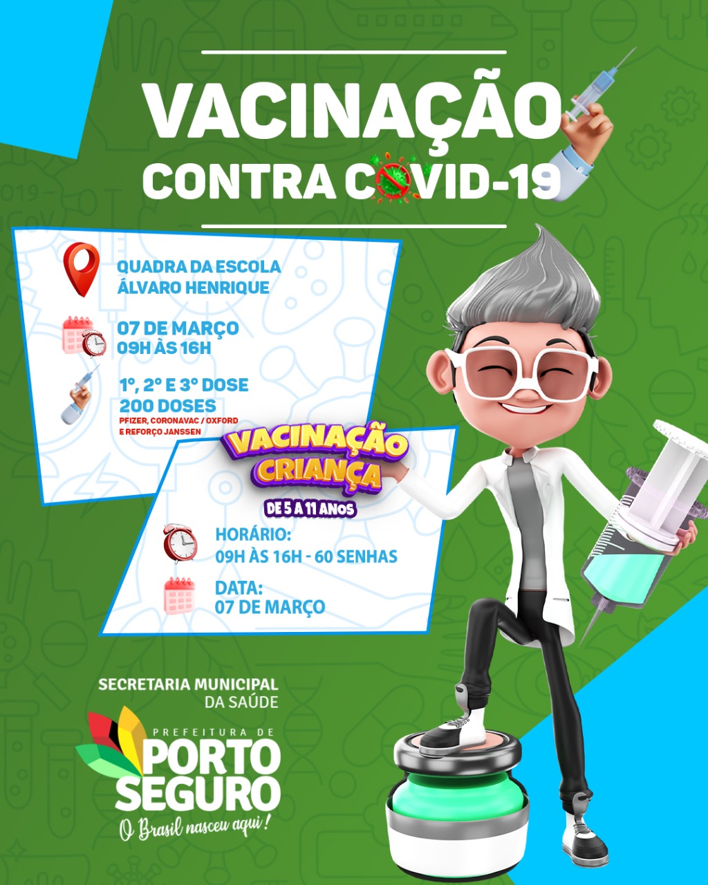 PREPARA O BRAÇO 💪🏽 NO BAIANÃO TEM 1ª, 2ª E 3ª DOSE DA VACINA CONTRA A COVID-19 E PARA A CRIANÇADA DE 5 A 11 ANOS TAMBÉM!