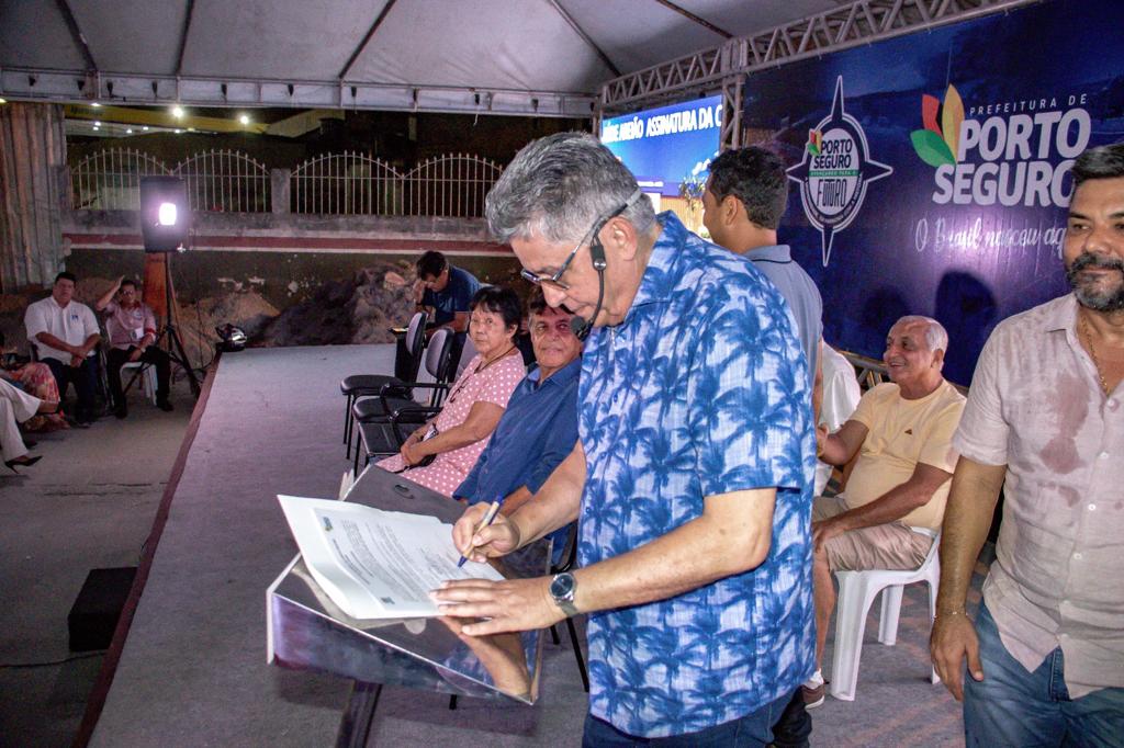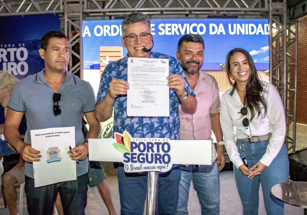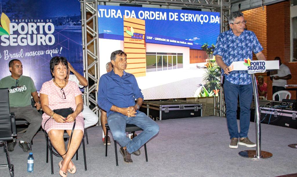 A ordem de serviço para construção da nova Unidade de Saúde do bairro Areião foi assinada nesta sexta-feira, 5, pelo prefeito de Porto Seguro, Jânio Natal, e o vice-prefeito, Paulinho. Em clima de festa, o evento aconteceu na Praça São Sebastião, ao lado do local onde será a futura unidade, e reuniu secretários municipais, vereadores, lideranças políticas, servidores municipais, profissionais da saúde, pacientes do posto e muitos moradores.