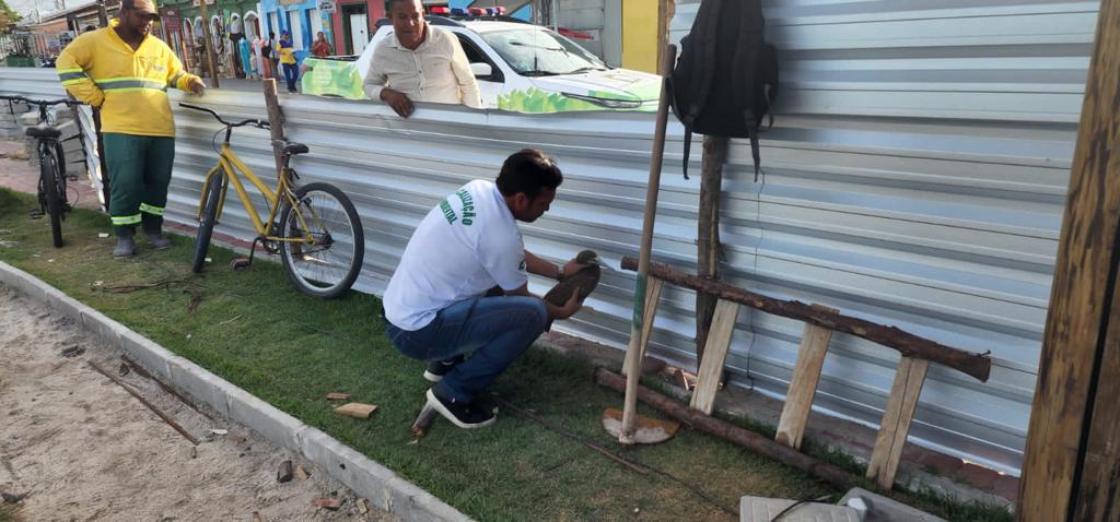 Um atobá-pardo foi resgatado durante realização de obra para revitalização da Passarela da Cultura, nesta segunda-feira, 22.