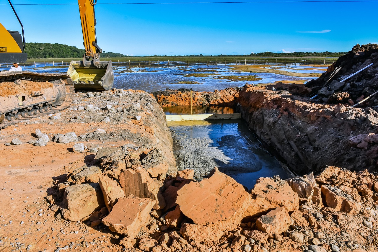 A reconstrução da Estrada dos Búfalos, principal acesso a Caraíva, Itaporanga e Praia do Espelho, segue avançando, agora com a instalação das primeiras galerias. O projeto contempla a recuperação de um trecho de aproximadamente 2 quilômetros, que será aumentado em 2,70 metros de altura.