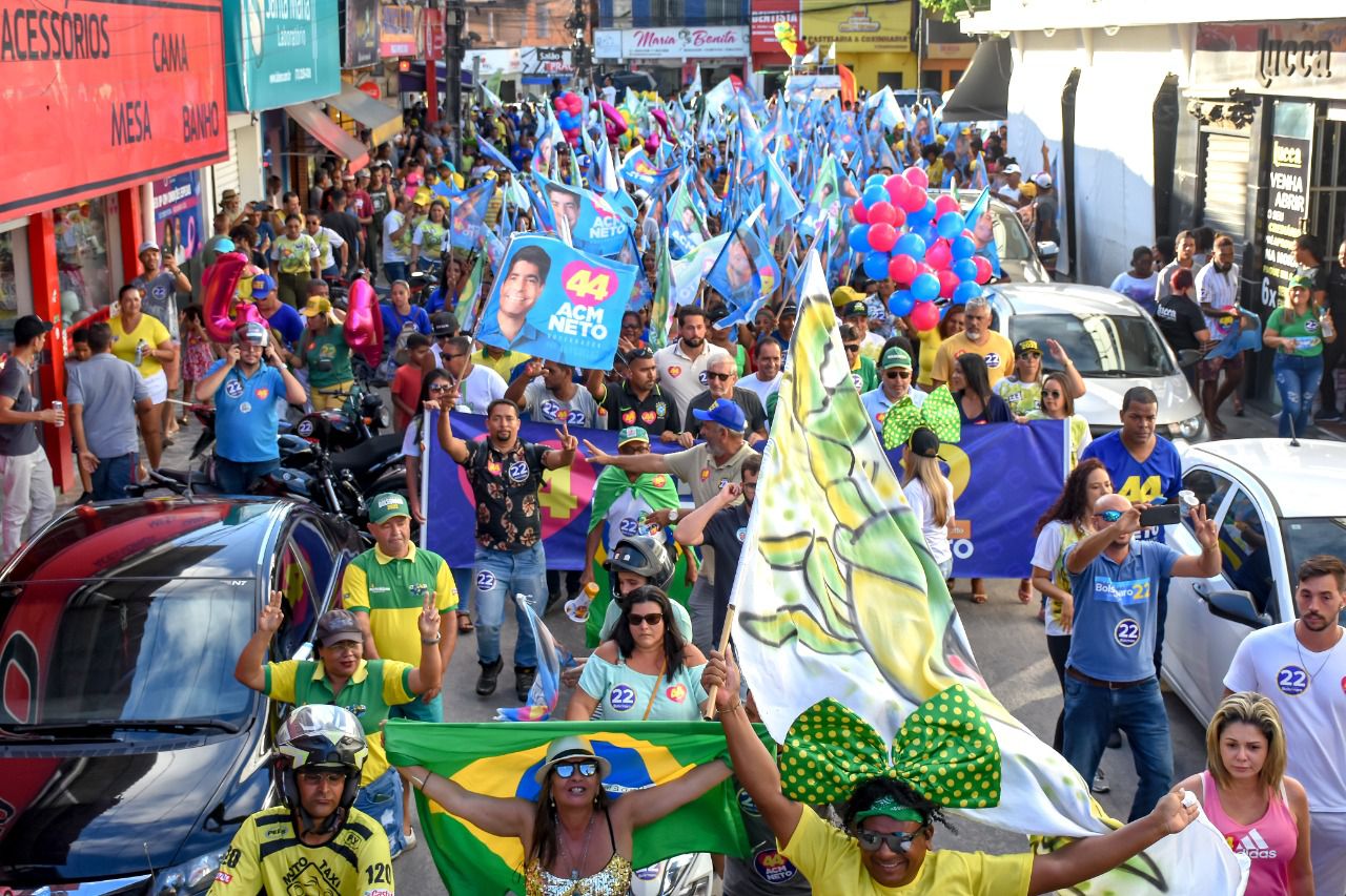 Nesta sexta-feira, 28, foi a grande caminhada pelas ruas principais, partindo da Praça da Caixa D’água, no Baianão. Vereadores, secretários, servidores, lideranças políticas e comunitárias e o Vice-Prefeito, Paulinho Toa Toa, guiaram a multidão de apoiadores, que entoava as músicas e os gritos da campanha de Jair Bolsonaro para Presidente e ACM Neto para Governador da Bahia.