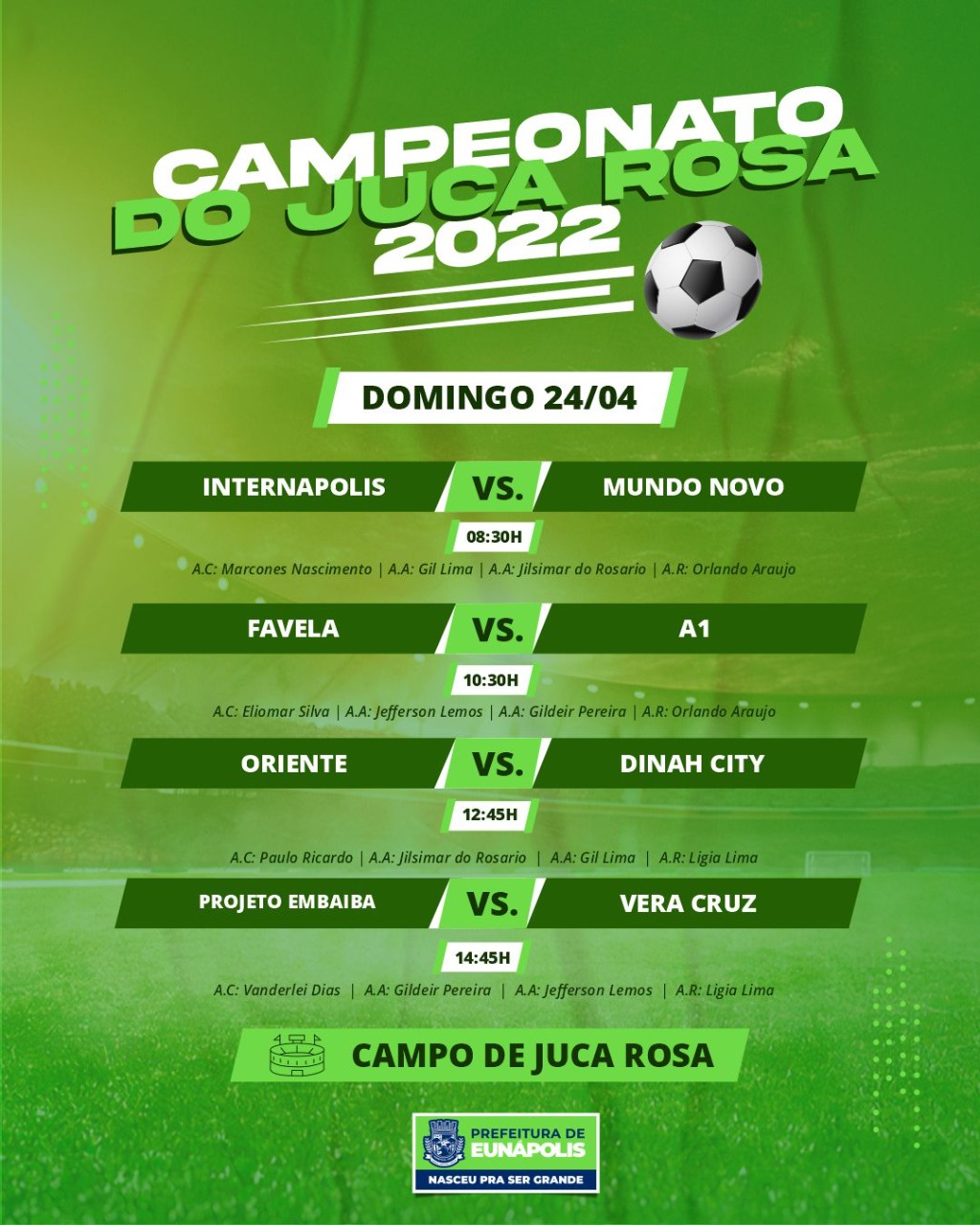 A partir das 8h30, no Campo do Juca Rosa, pela segunda rodada das oitavas de final, se enfrentam: