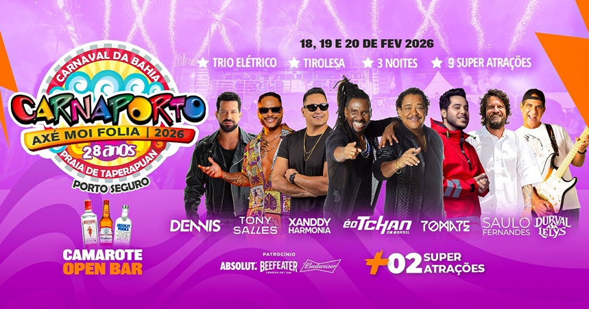 A mistura de ritmos que só o Carnaporto Axé Moi sabe fazer está confirmada e vai ser inesquecível! A atração que faltava para fechar com chave de ouro acaba de ser anunciada: o lendário É O Tchan do Brasil está na linha! O verdadeiro pagode baiano vai agitar a 28ª edição da maior festa indoor de Porto Seguro.