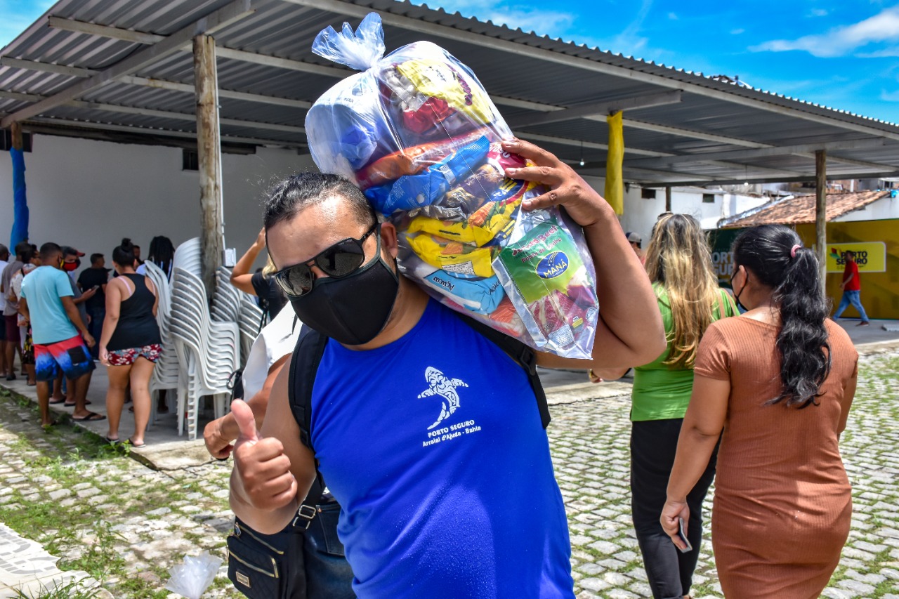 Cestas básicas são entregues na manhã, desta quinta-feira (30) para mais cem barraqueiros, que trabalham na Passarela do Descobrimento. Em menos de uma semana, a Prefeitura de Porto Seguro, por meio da Secretaria Municipal de Assistência Social, destinou uma média de 400 cestas básicas à classe, adquiridas com recursos próprios.