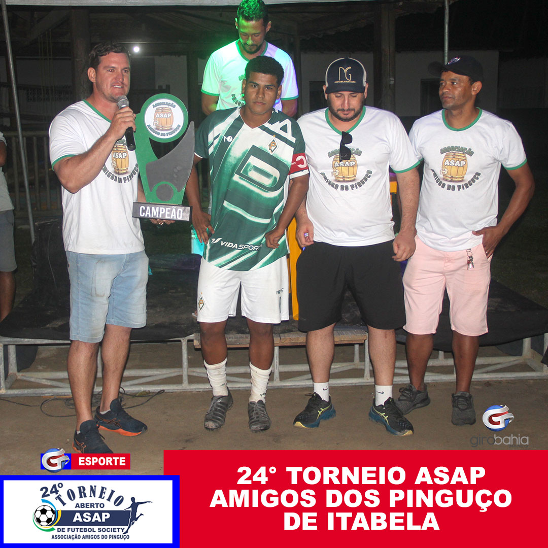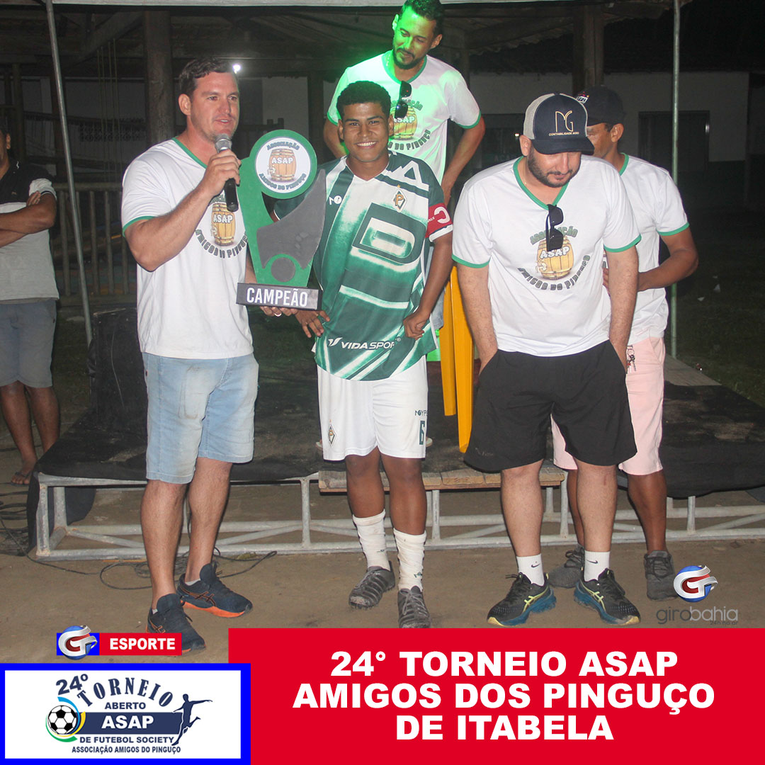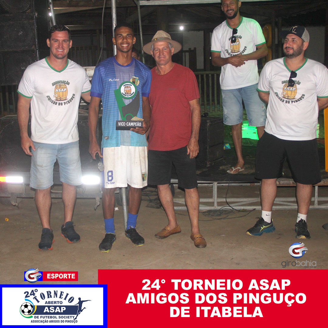 ITABELA – O 24° Torneio ASAP Amigos dos Pinguços de Itabela foram de tirar o fôlego! As equipes Meninos da Vila e Os Pebas se enfrentaram em um emocionante jogo. O evento foi organizado pelo Presidente Mariano Grassi, que mostrou para que veio ao assumir a presidência e promover um belíssimo evento totalmente voltado para o esporte.