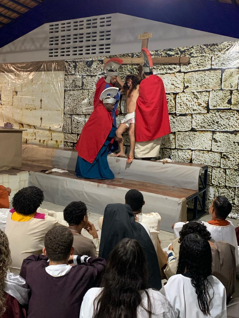 Nesta quinta-feira 28 de Março o Colégio Municipal de Itabela, resgata tradições e volta suas apresentações e ações que por algum tempo ficaram interrompida. O espetáculo da Paixão de Cristo que já era tradição foi consolidado em parceria com diversos colaboradores. O evento aconteceu nos três turnos Matutino, vespertino e Noturno alcançando um público de mais de mil pessoas, entre eles estudantes, apoiadores e funcionários.