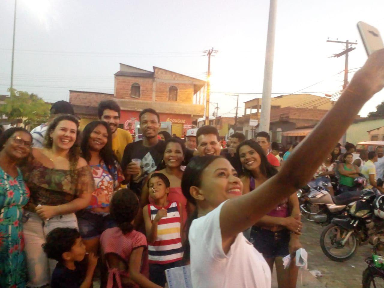 Várias selfies foram tiradas, transmissões ao vivo, e gritos de: [Nossa prefeita chegou]  [Essa é a mulher que vai fazer a diferença]. [Chega logo 2020]