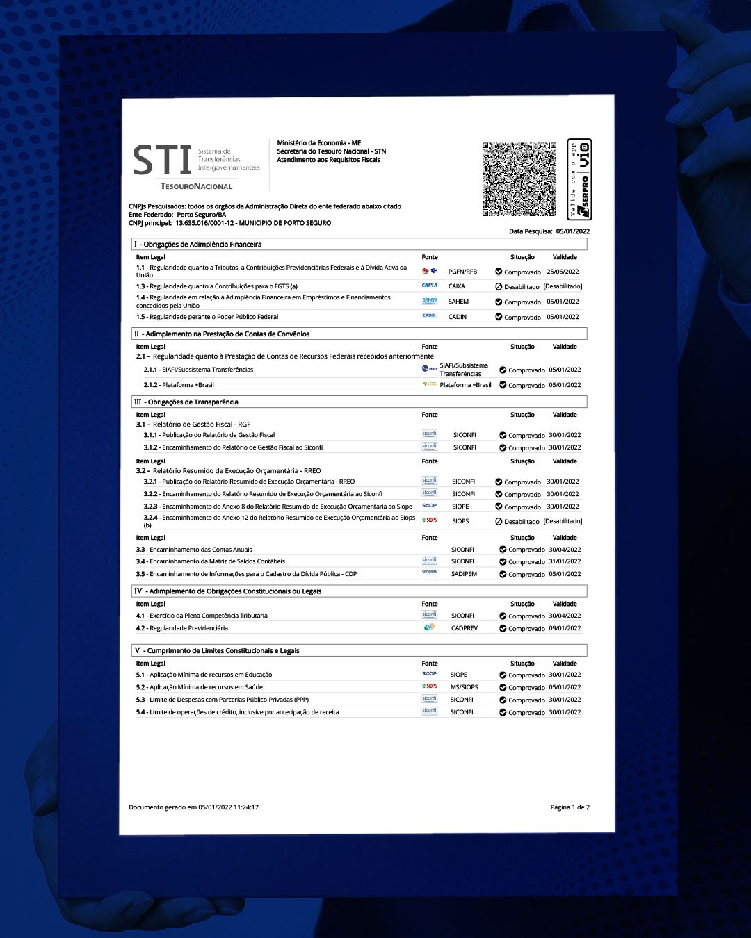 Após o pagamento de dívidas contraídas por administrações anteriores e a efetivação de ajustes fiscais junto às principais instituições estaduais e federais, a Prefeitura de Porto Seguro agora tem nome limpo junto à Receita Federal, INSS e os principais órgãos federais e estaduais.