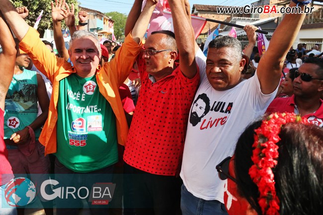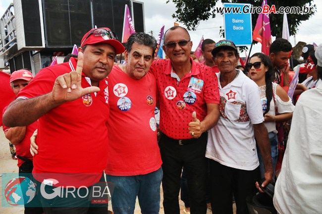 Rui Costa, Valmir Assunção e Leleu da Sacaria Colocaram uma multidão de pessoas com a suas camisetas vermelhas, conseguiu colocar em uma só caminhada, lideranças políticas de vários partidos e grupos existentes dentro e fora do município.