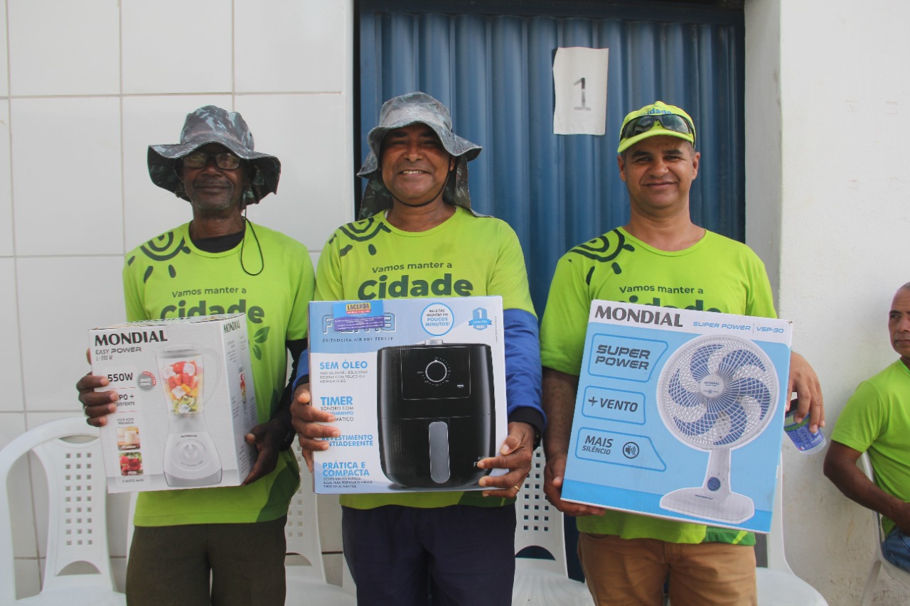 A prefeita presentou especialmente o gari Adriano Sousa com um equipamento de proteção individual (EPI). “Eu trabalho como gari há seis anos, hoje foi um dia incrível, marcante, que eu nunca vou esquecer. Tive a oportunidade de conhecer a prefeita. Essa festa foi maravilhosa”, destacou. Quem foi sorteado, disse que vai presentear outra pessoa com o brinde. “Eu trabalho há mais de 30 anos como gari e hoje ganhei um secador, que vou presentear minha linda esposa, gostei muito presente”, disse o gari Osmar Ribeiro Brito, 55 anos.