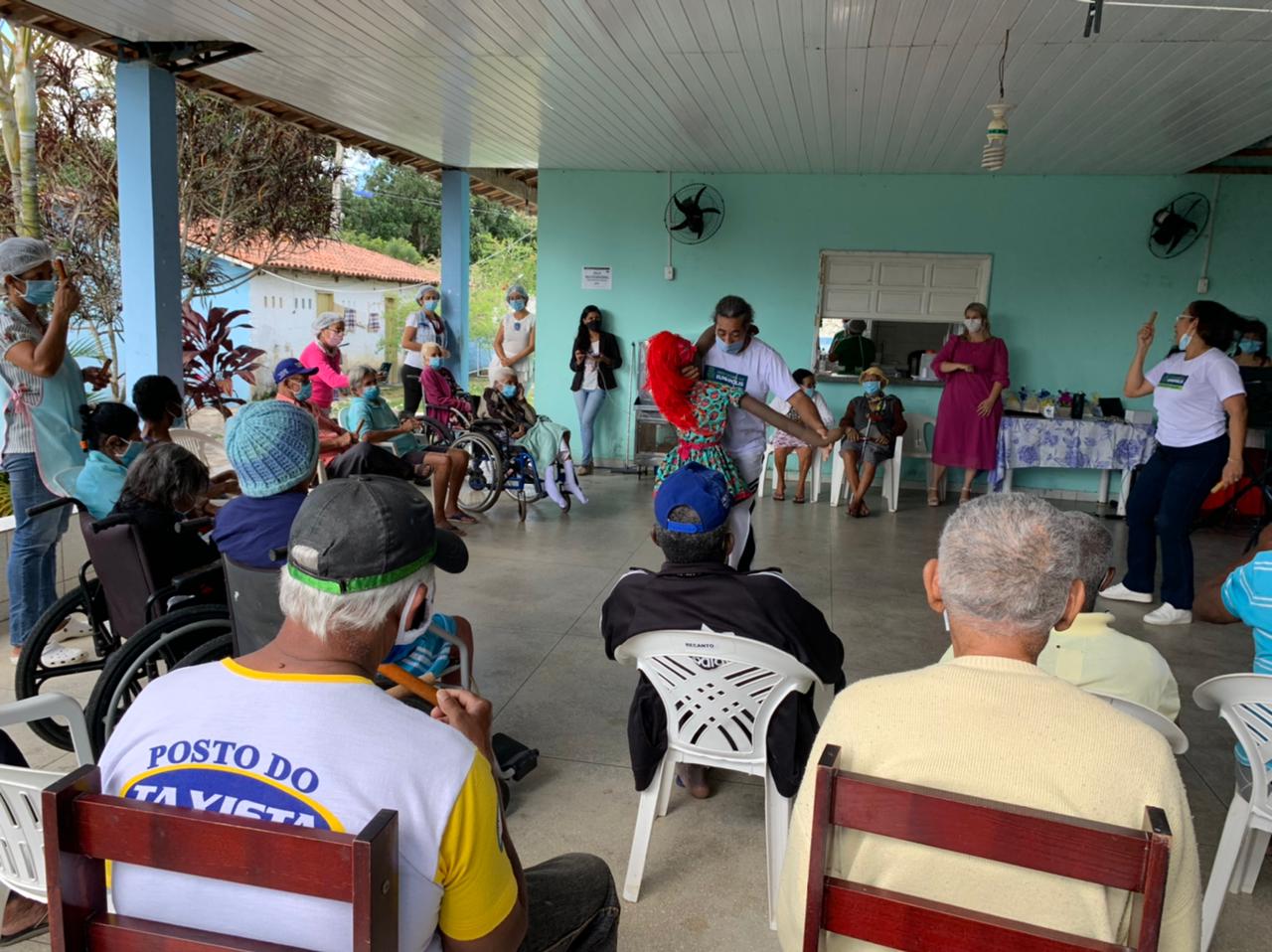 Música, apresentações de dança, atividades físicas e distribuição de brindes estiveram presentes na comemoração. A programação alegrou os idosos, que participaram com euforia de todas as atividades.