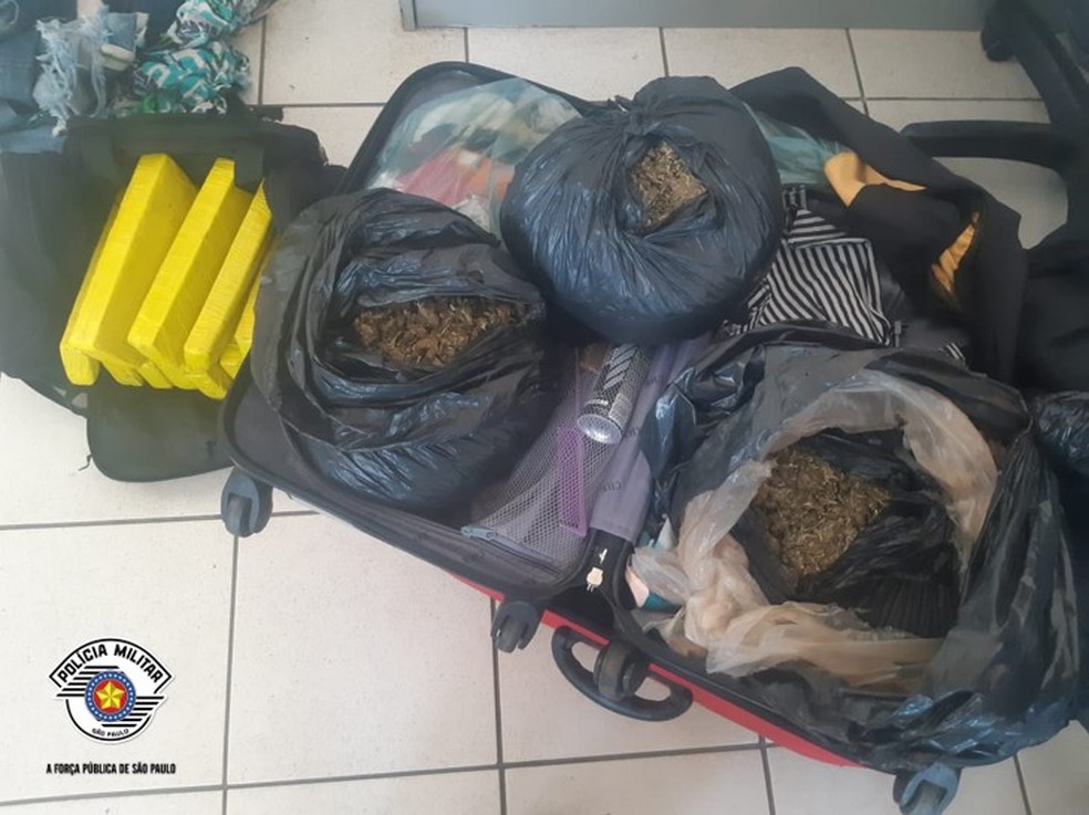 Ainda conforme a polícia, no segundo ônibus, o cão Aslan encontrou duas bagagens com 2,885 quilos de skank e, na bolsa da proprietária, 10 tabletes de maconha pesando 6,308 quilos.