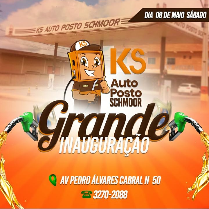 O KS AUTO POSTO SCHMOOR passa a funcionar a partir deste sábado, dia 08 de maio a partir das 5 da manha, e oferece combustíveis de qualidade e preço justo e com sorteios de vários brindes.
