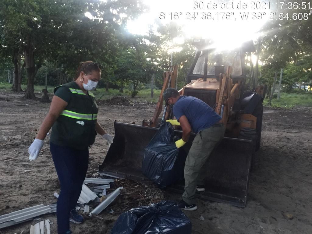 Material ainda não identificado foi recolhido em praia do Mundaí pela equipe de Fiscalização Ambiental, da Secretaria Municipal de Meio Ambiente e Causa Animal, na manhã de sábado (30).