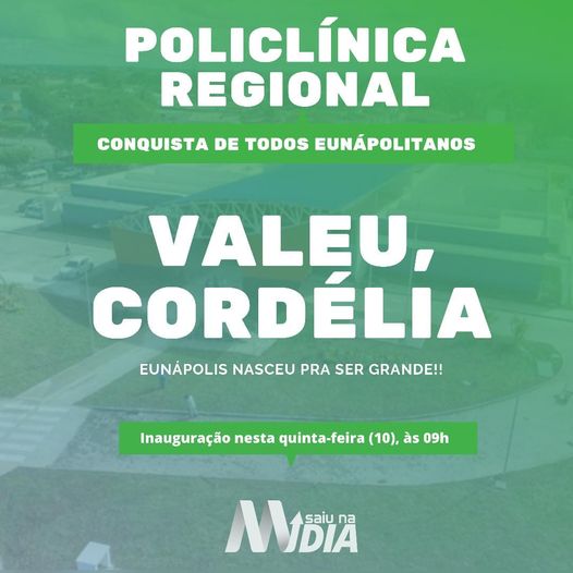 Em entrevista ao programa VIDA COMUNITÁRIA na rádio 104 FM Vida, na tarde de quarta-feira, dia 09, a prefeita de Eunápolis, Cordélia Torres, deu em primeira mão a notícia que Eunápolis irá participar CONSÓRCIO PÚBLICO INTERFEDERATIVO DE SAÚDE COSTA DO DESCOBRIMENTO, e terá todos os serviços de saúde prestados pela Policlínica Regional, disponibilizados para os cidadãos de Eunápolis.