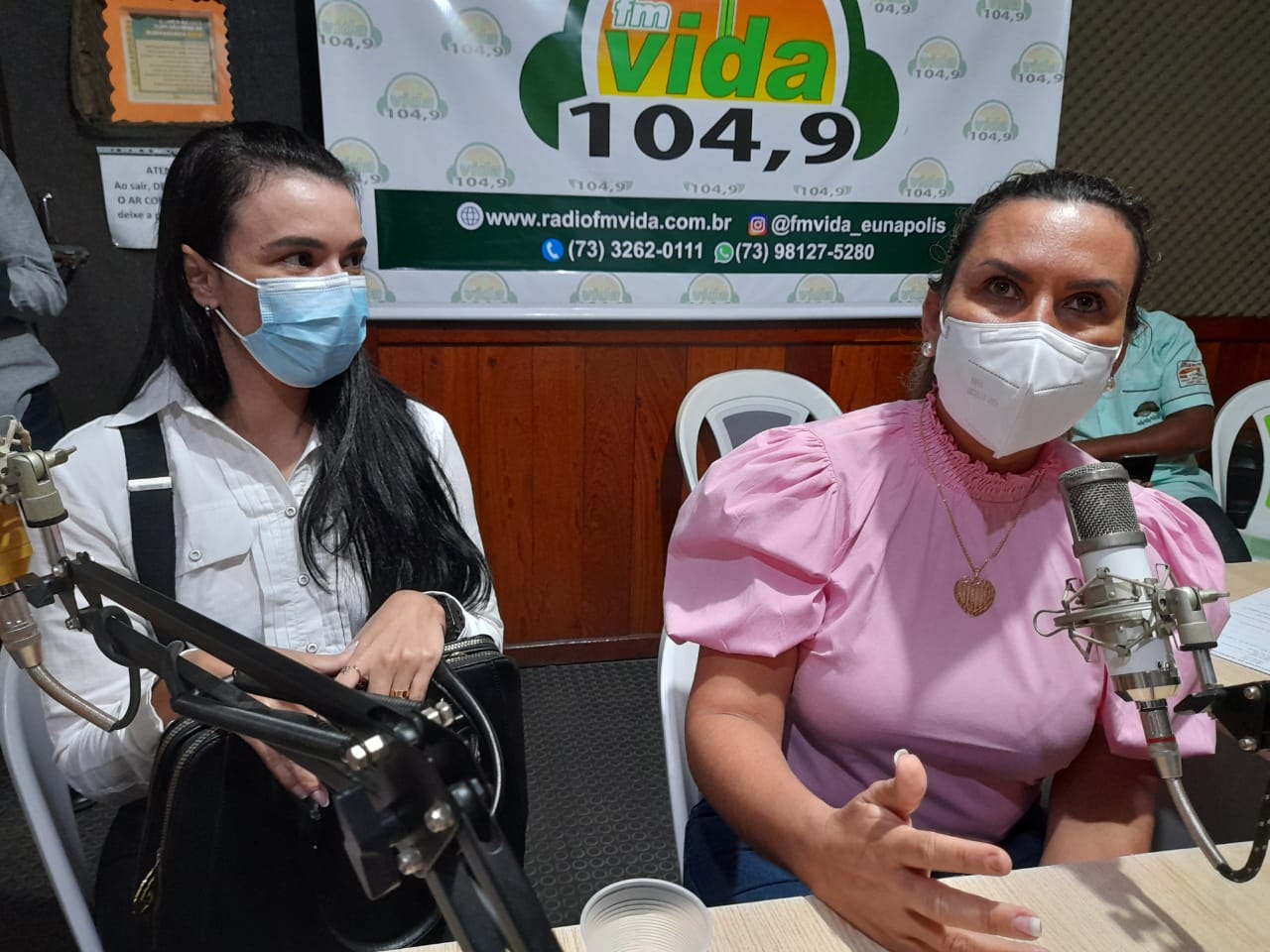 Prefeita Cordélia e secretária de saúde Anara Sartório em entrevista à Rádio Fm Vida