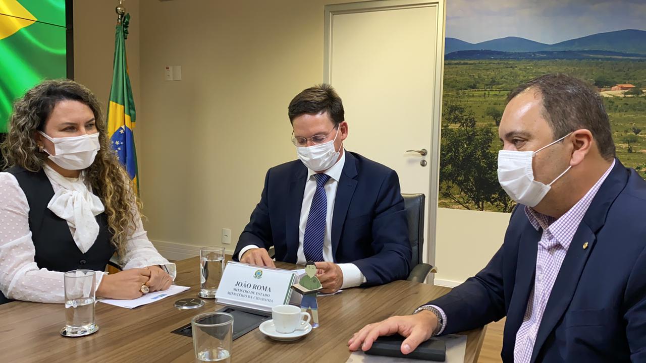 Em audiência com ministro João Roma, a prefeita Cordélia e o deputado federal Elmar Nascimento.