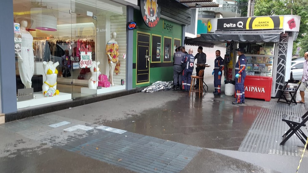 O corpo de Camata ficou caído na calçada. A perícia da Polícia Civil esteve no local e investiga o caso.