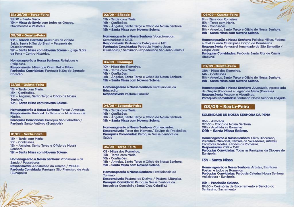 As ruas do centro histórico ganharão vida com a devoção fervorosa dos romeiros, que se reúnem para celebrar a figura sagrada de Nossa Senhora da Pena. A programação intensa incluirá missas solenes, procissões e momentos de oração, proporcionando aos fiéis um espaço de conexão espiritual e reflexão.