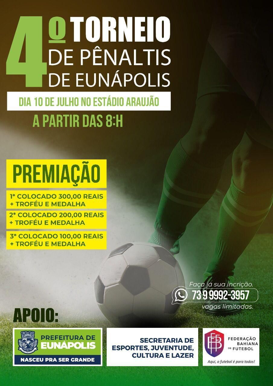 Proporcionando mais iniciativas e integração ao esporte, a Prefeitura de Eunápolis, por meio da Secretaria de Esporte, Juventude, Cultura e Lazer, está apoiando competições esportivas que acontecerão neste fim de semana: Copa de Futsal e a 4° edição do Torneio de Pênaltis, que tem como objetivo fomentar a práticas esportiva entre jovens e adultos no município.