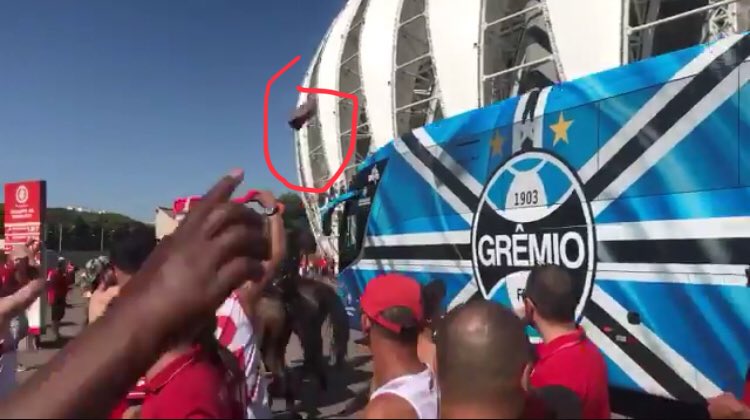 Um dia depois (26/02), quando conduzia seus atletas para o derby contra o Internacional no Estádio do Beira-Rio (Porto Alegre/RS), o ônibus do Grêmio foi atingido por uma pedra que quebrou uma janela e atingiu a cabeça do meio-campista Villasanti, que precisou ser imediatamente conduzido ao hospital.