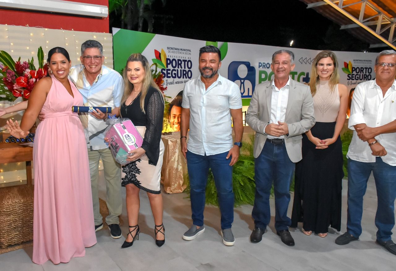 O prefeito de Porto Seguro, Jânio Natal, acompanhado da primeira-dama, Cristiane Chiachio e do secretário de Assistência Social, João Portela, recebeu à mesa diretiva a presidente da Câmara Municipal, Ariana Prates, o vice-prefeito e secretário de Turismo, Paulinho Toa Toa, o empresário Raimundinho JR e a superintendente de Trabalho, Emprego e Renda, Clara Gomides.