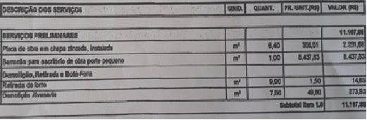 De acordo com moradores da localidade não foi construído nenhum tipo de barracão  para utilização temporária durante a reforma, nem a fixação da chapa zincada, nem retirada de forro até mesmo porque a sala não era forrada e nem tampouco derrubaram alvenarias, pois ainda permanece a estrutura de paredes que já existiam. Esses serviços preliminares custaram R$ 11.107,86 do valor total da obra, porém nunca foram executados.