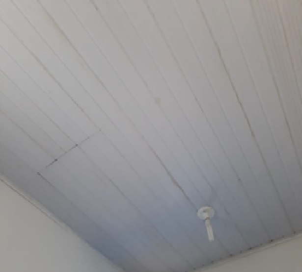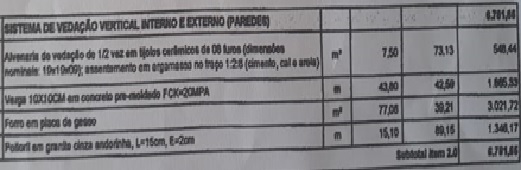 Como podemos observar na imagem ao lado, não existe roda meio em madeira, assim como as paredes não sofreram aplicação de massa PVA, que planilha esse item custou R$ 3.590,13, porém o serviço não foi executado, o tratamento realizado nas paredes foi apenas pintura com tinta. Podemos verificar também que houve a colocação de revestimento cerâmico nas paredes, mas não podemos verificar se o revestimento nas paredes correspondem a 214,2 metros quadrados.