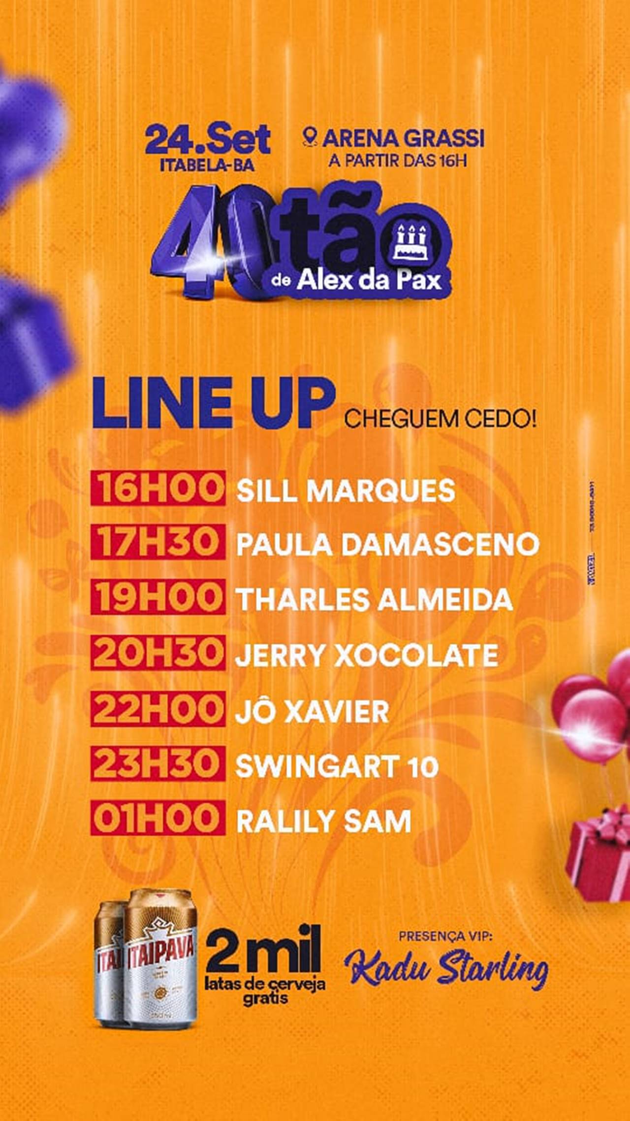O evento que promete levar centenas de pessoas, contará com várias atrações musicais como: Sill Marques, Paula Damasceno, Tharles Almeida, Jerry Xocolate, Jô Xavier, Swingart 10, Ralily San e ainda contará com a presença do influencer Kadu Starling