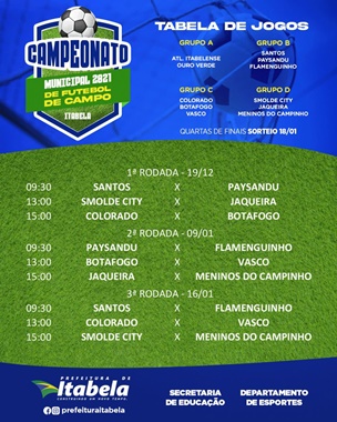 O campeonato será realizado em três rodadas iniciadas, respectivamente, nos dias 19 de dezembro, 09 de janeiro de 2022 e 16 de janeiro. “Apesar das adversidades climáticas que a região está enfrentando, não poderíamos deixar de realizar esse campeonato que valoriza nossos talentos”, concluiu o prefeito Luciano Francisqueto.