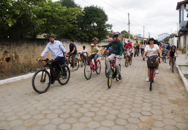 Durante o trajeto com os ciclistas o Prefeito reeleito de Itabela entregou na rua São José do Panorama mais 12 ruas pavimentadas ao município e distritos, e seguiu junto ao passeio até a Unidade de Saúde Benedito Ribeiro dos Santos, no bairro Dapezão.