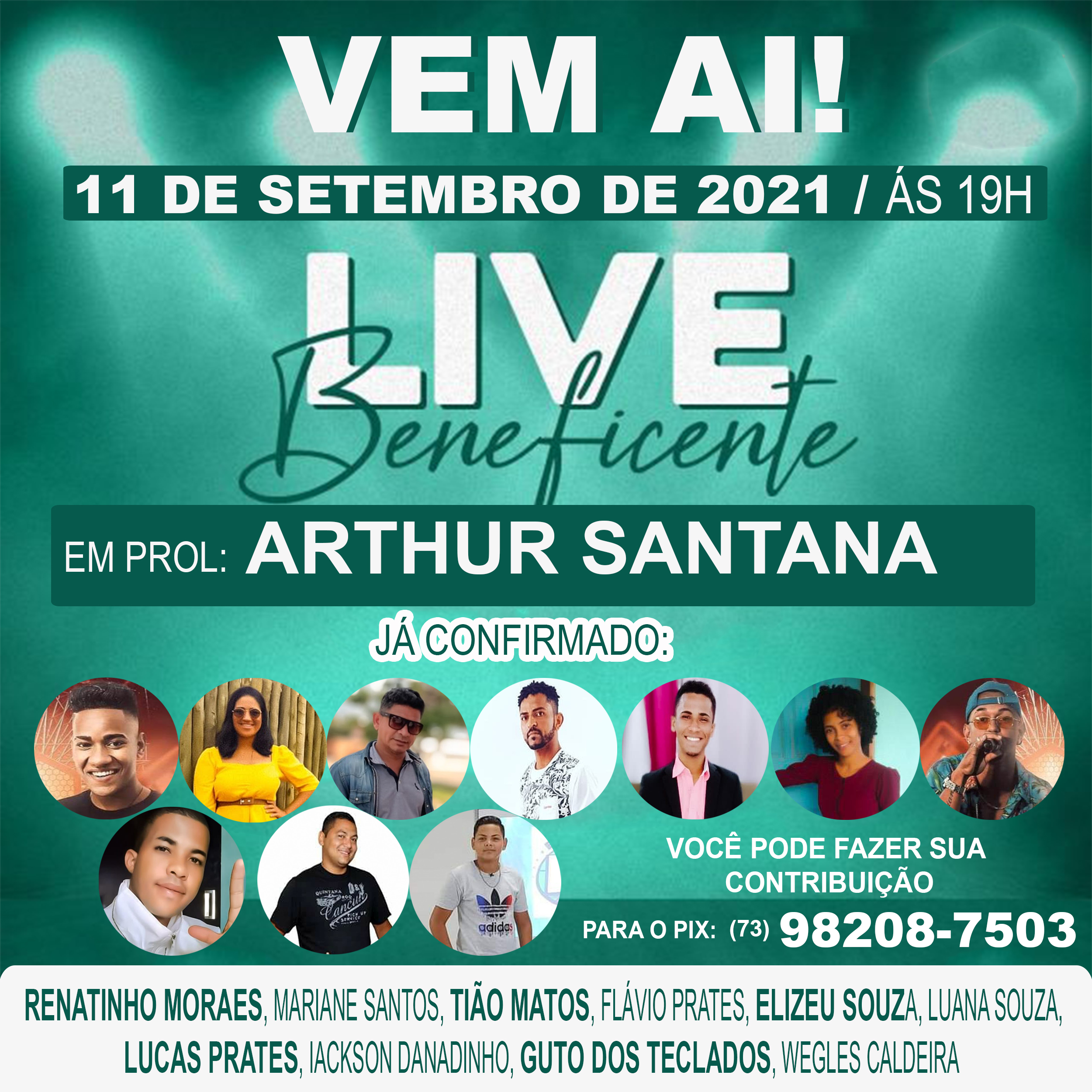 COMO AJUDAR – Você pode estar assistindo a Live que vai acontecer neste Sábado dia (11), as 19h, e fazendo a sua contribuição na conta, pelo PIX, (73) 98208-7503, em nome de (Aline de Oliveira Santos), e fundamental a sua ajuda ao garoto Arthur Santana.