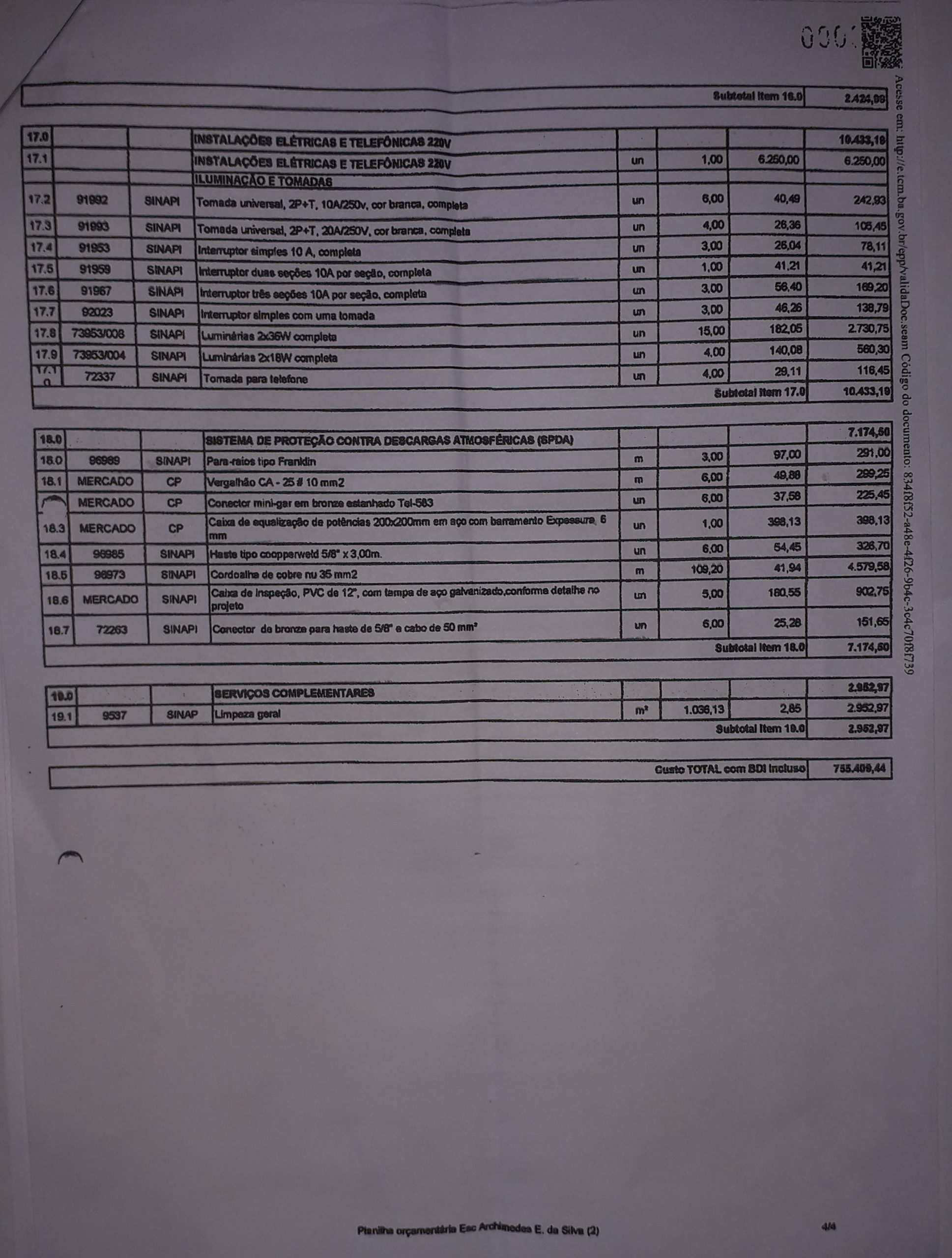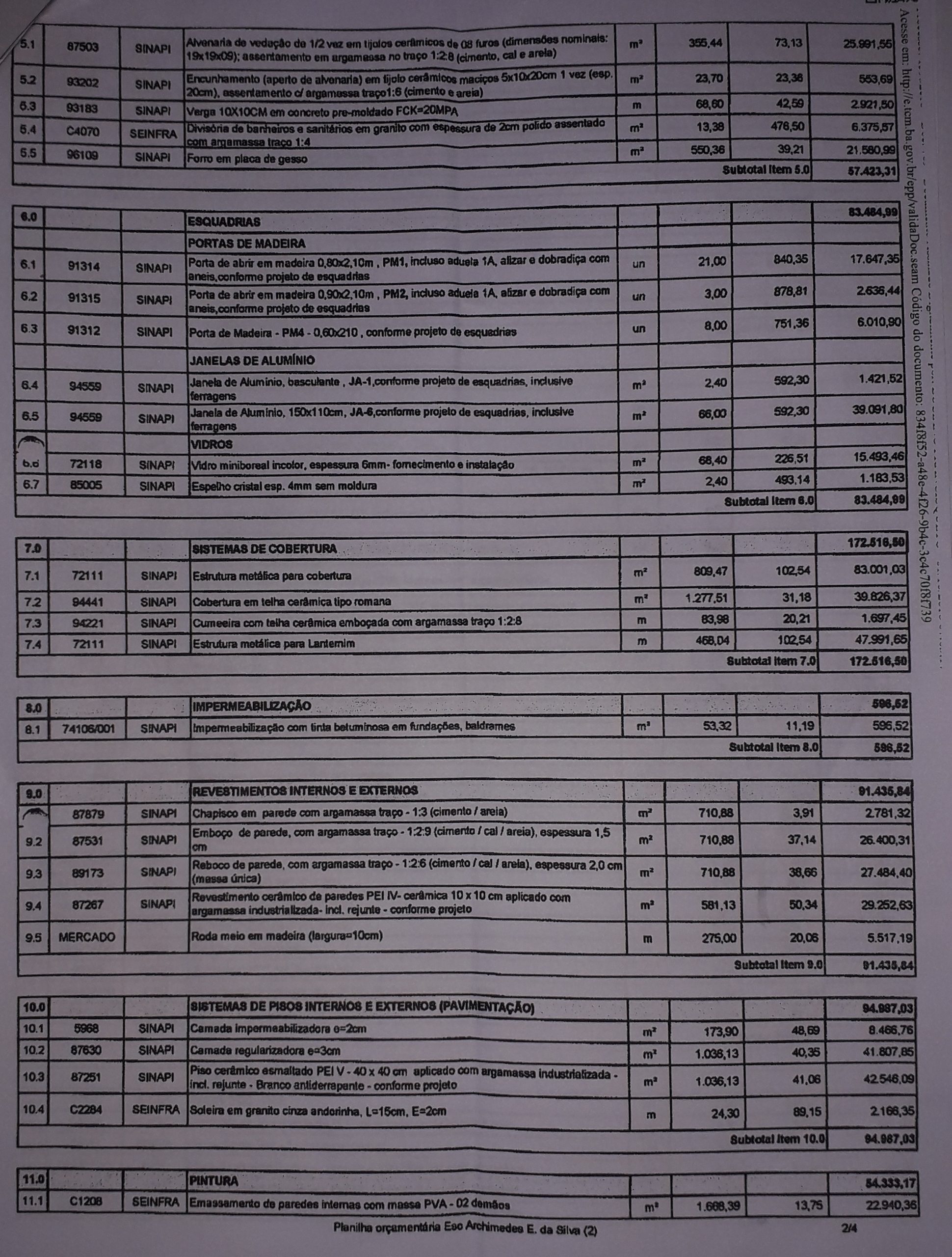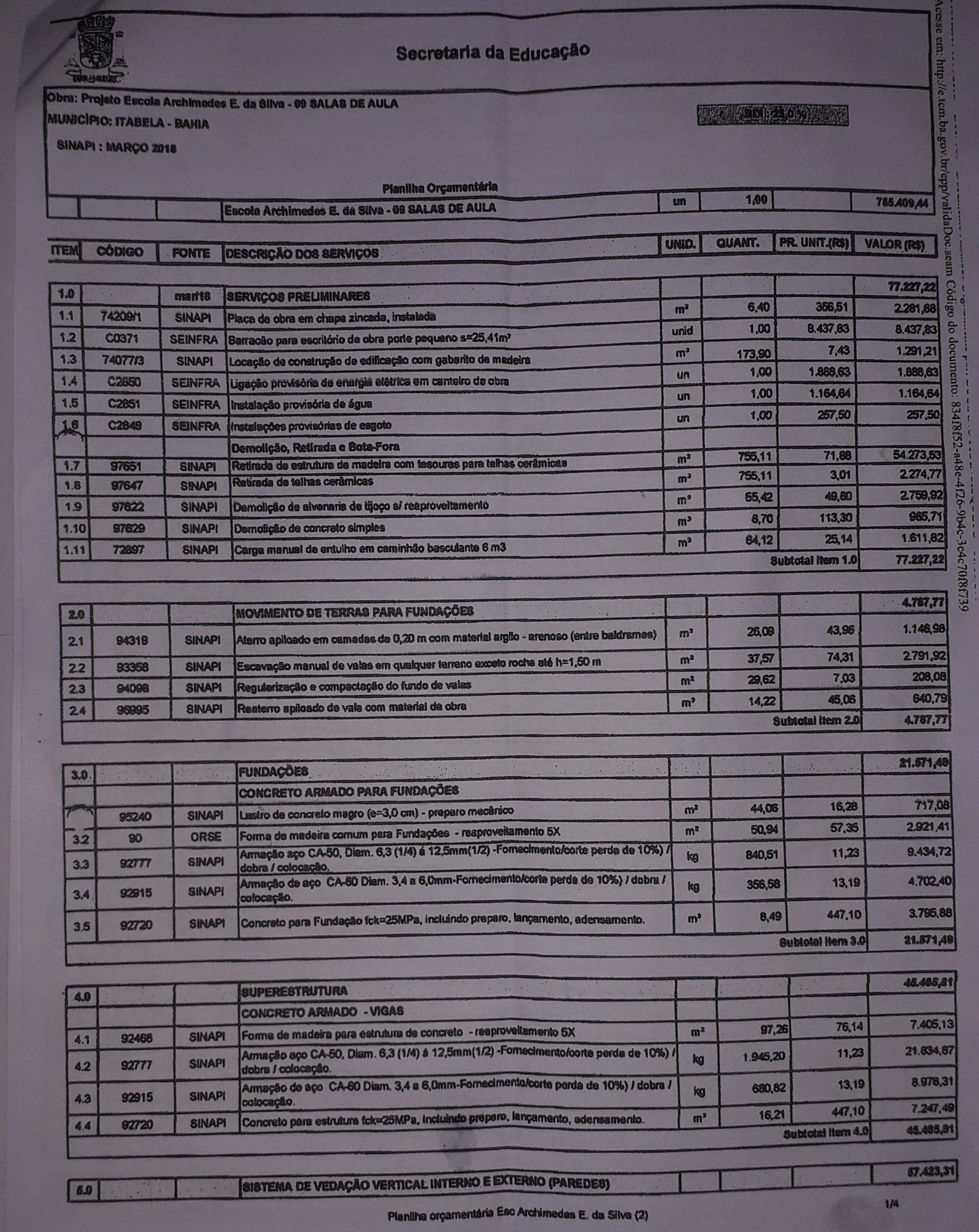 O SITE Girobahia.com.br, teve acesso a planilha orçamentária da reforma e ampliação do ColégioArchimedes Ernesto da Silva, através do portal http://e.tcm.ba.gov.br e está acessível paraqualquer cidadão (fotos da planilha abaixo).