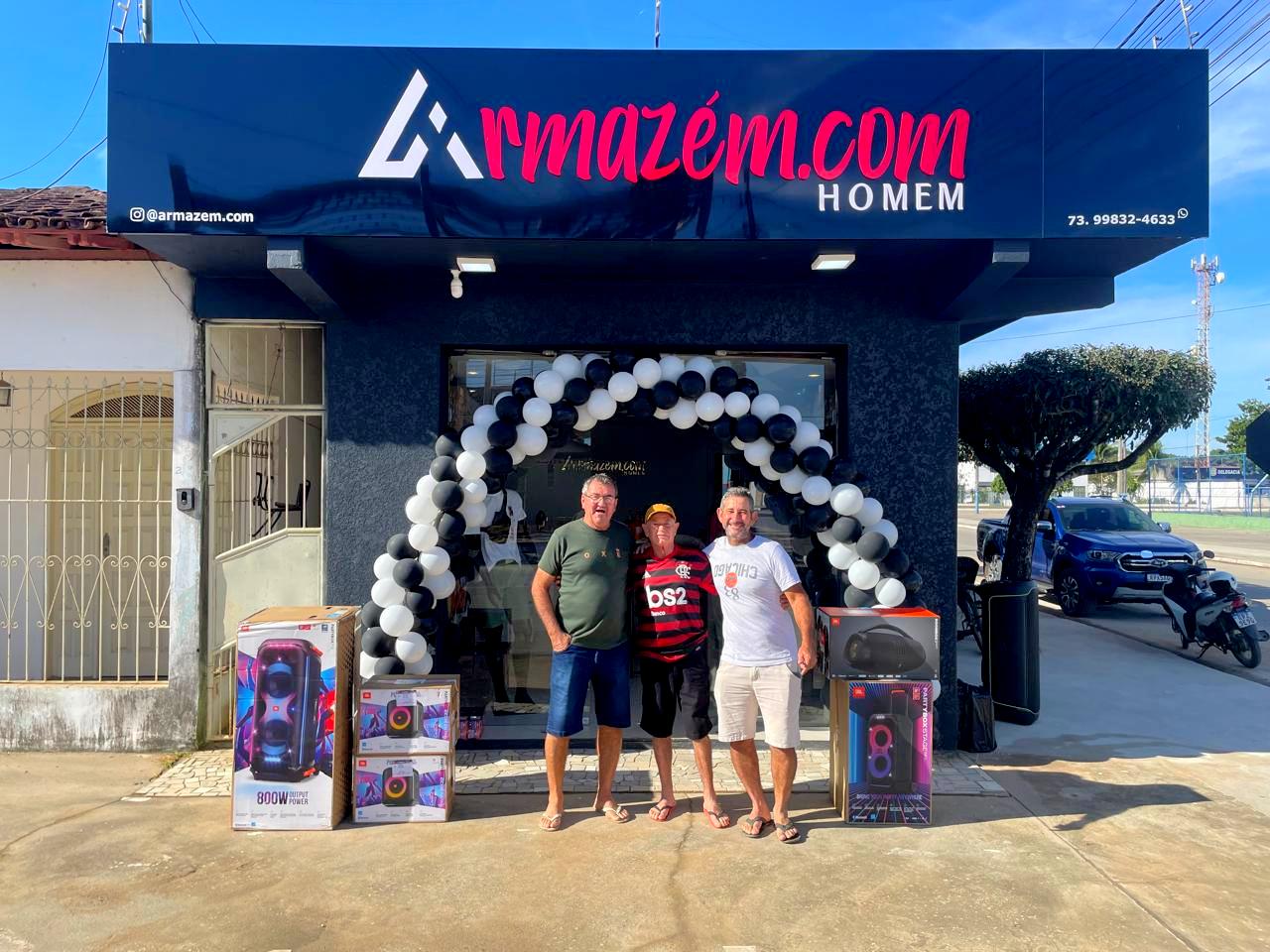 É com imensa alegria e gratidão que o Casal de Empresários Ângelo e Erica inauguram a Armazém.com Homem, a loja onde você encontra roupas masculinas de marcas originais, caixas de som da marca JBL Box e os melhores celulares!