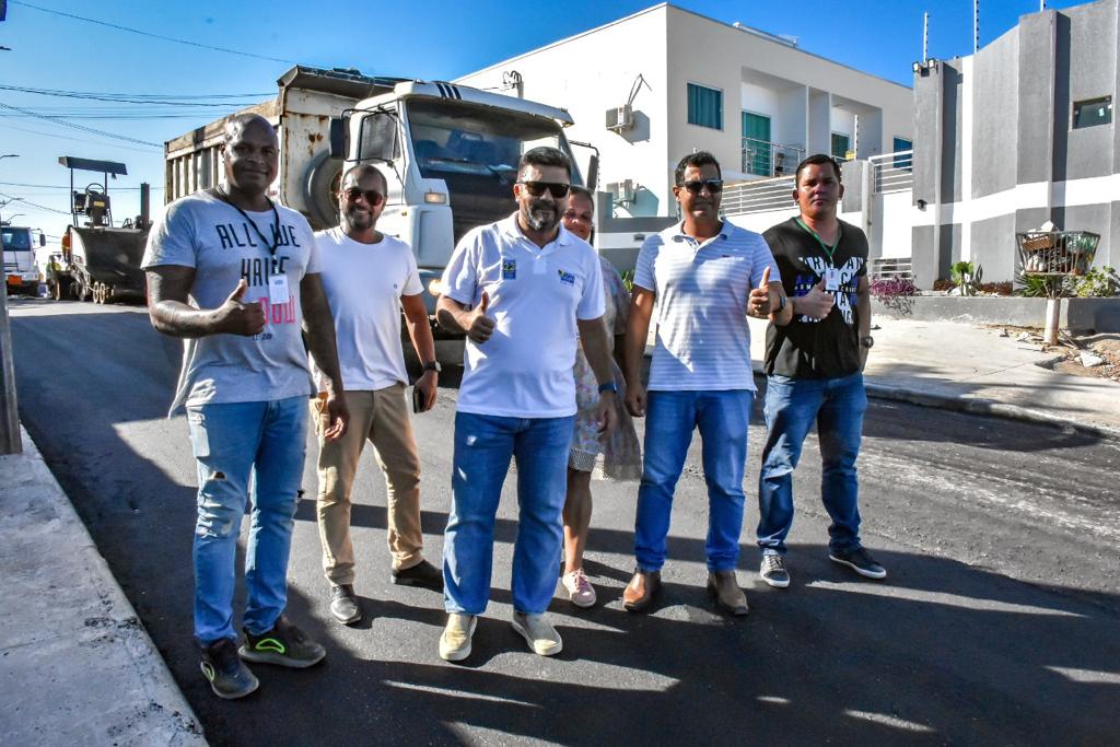 O vice-prefeito, Paulo Onishi, o secretário de Infraestrutura e Obras, Denisson Matos, suas equipes de trabalhos e moradores entusiasmados com a obra, acompanharam as atividades das máquinas e homens.