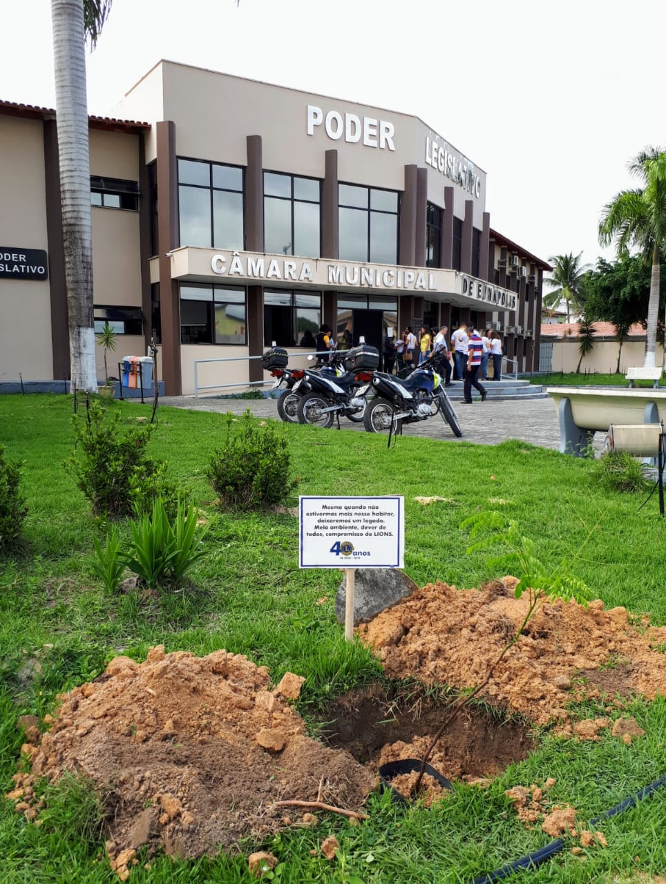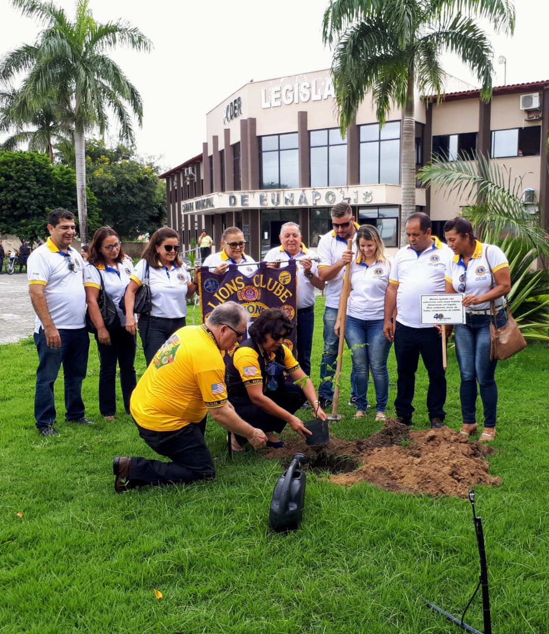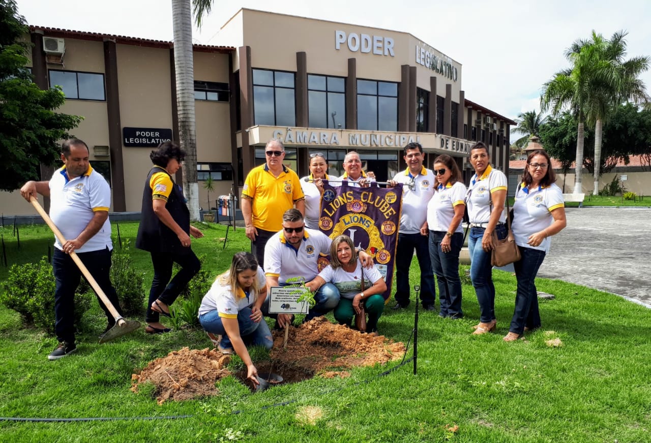 O Lions Clube Santa Cruz promoveu uma ação ambiental na manhã desta sexta-feira, 10 de maio, coordenando o plantio de mudas de Pau-Brasil, árvore que deu nome ao país, no jardim do prédio da Câmara de Vereadores de Eunápolis.