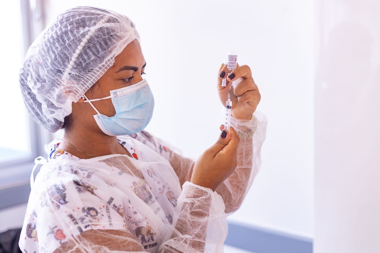 A primeira dose foi aplicada pela Secretária de Saúde, Wádla Casiano, que também é enfermeira. Para ela, o momento foi de realização.