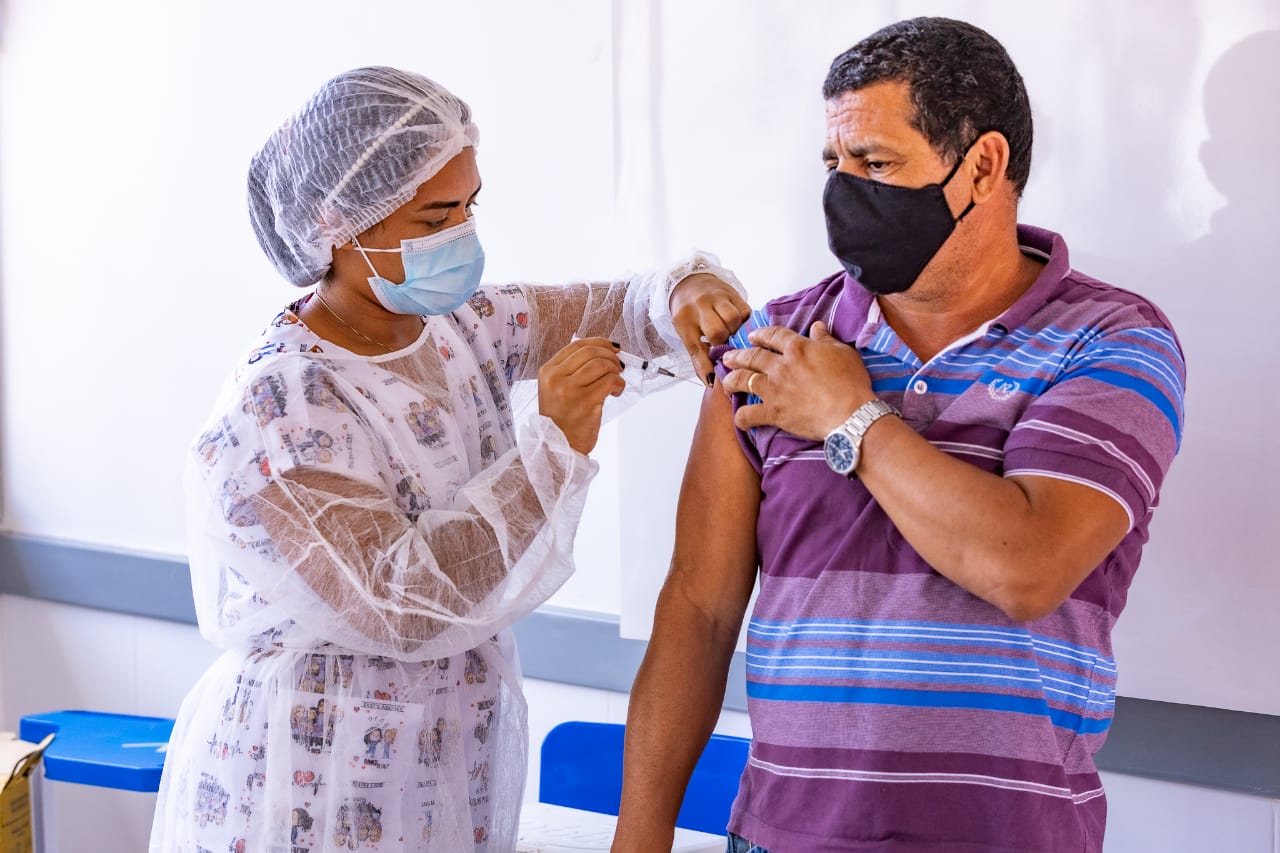 A primeira professora a receber o imunizante AstraZeneca foi Marilene Souza Brito, de 58 anos, que atua na área educacional do município há 21 anos.