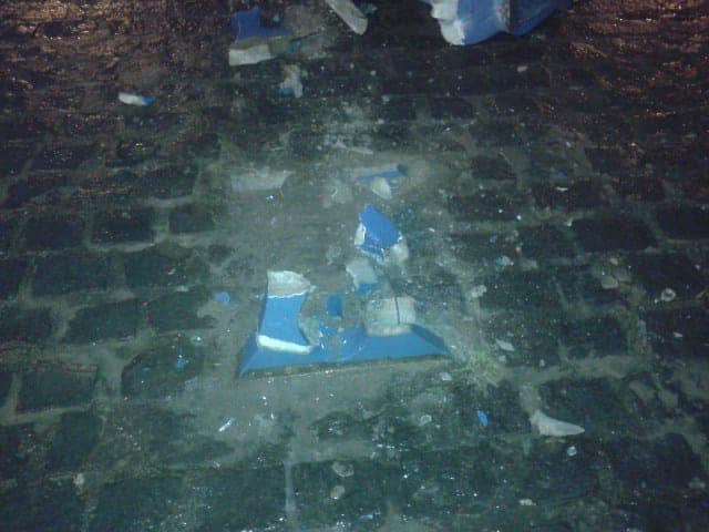 Do alcaide foi tamanha que chegou a quebrar alguns bancos de concreto da praça, (veja as imagens) Não contente saiu ainda pelas ruas da cidade retirando todas as faixas que encontrou pelo Caminho, isto mostra o despreparo deste moço em conviver com a democracia.