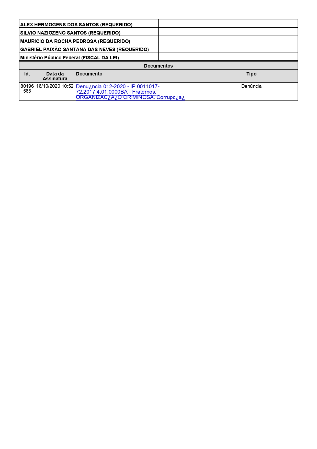 Veja alguns documentos da denúncia do MPF: