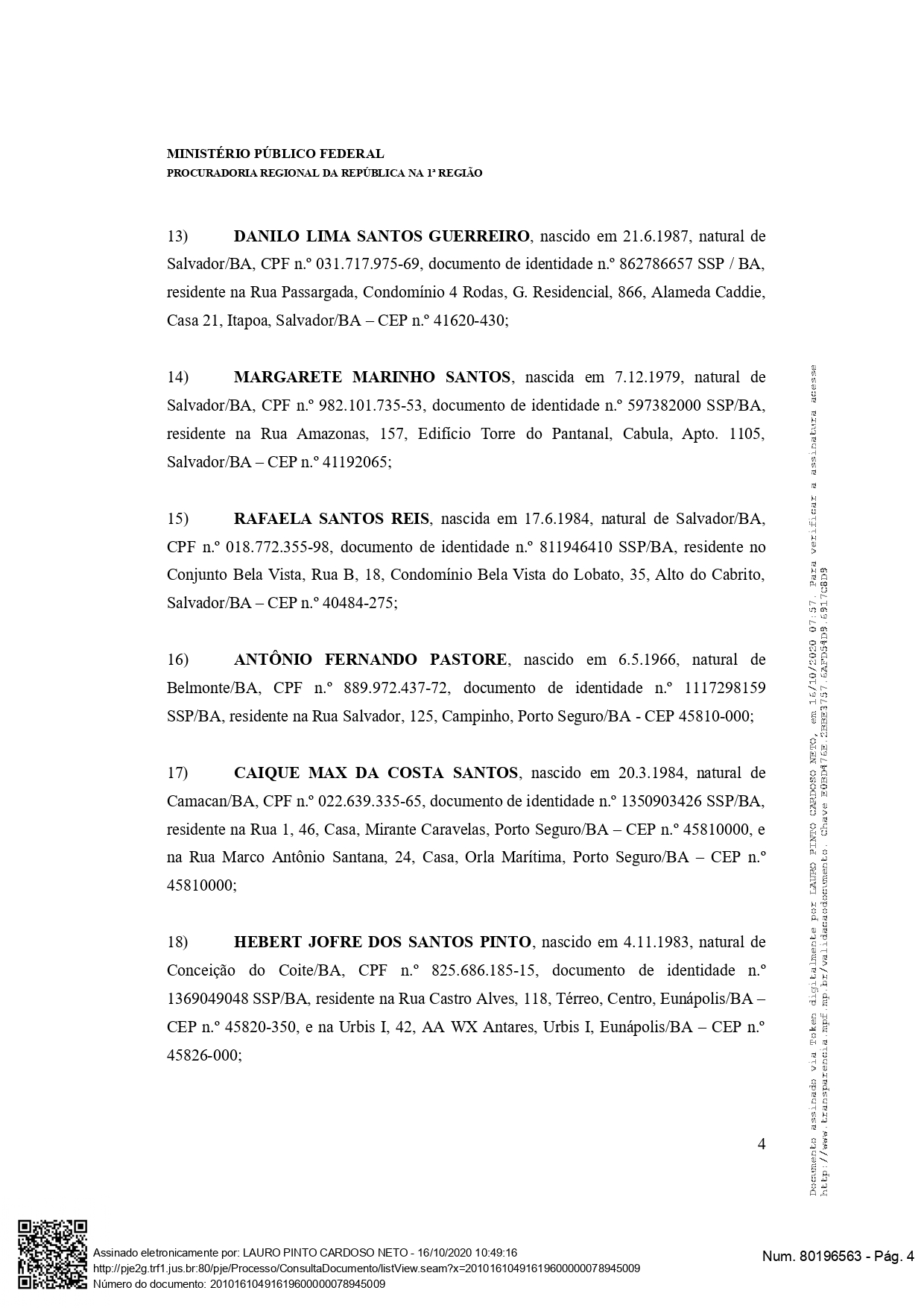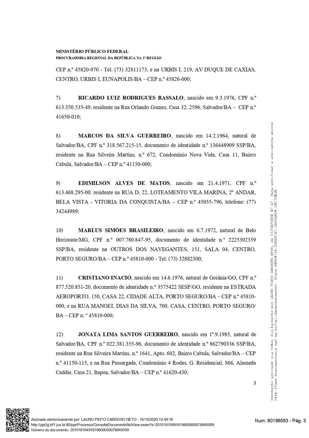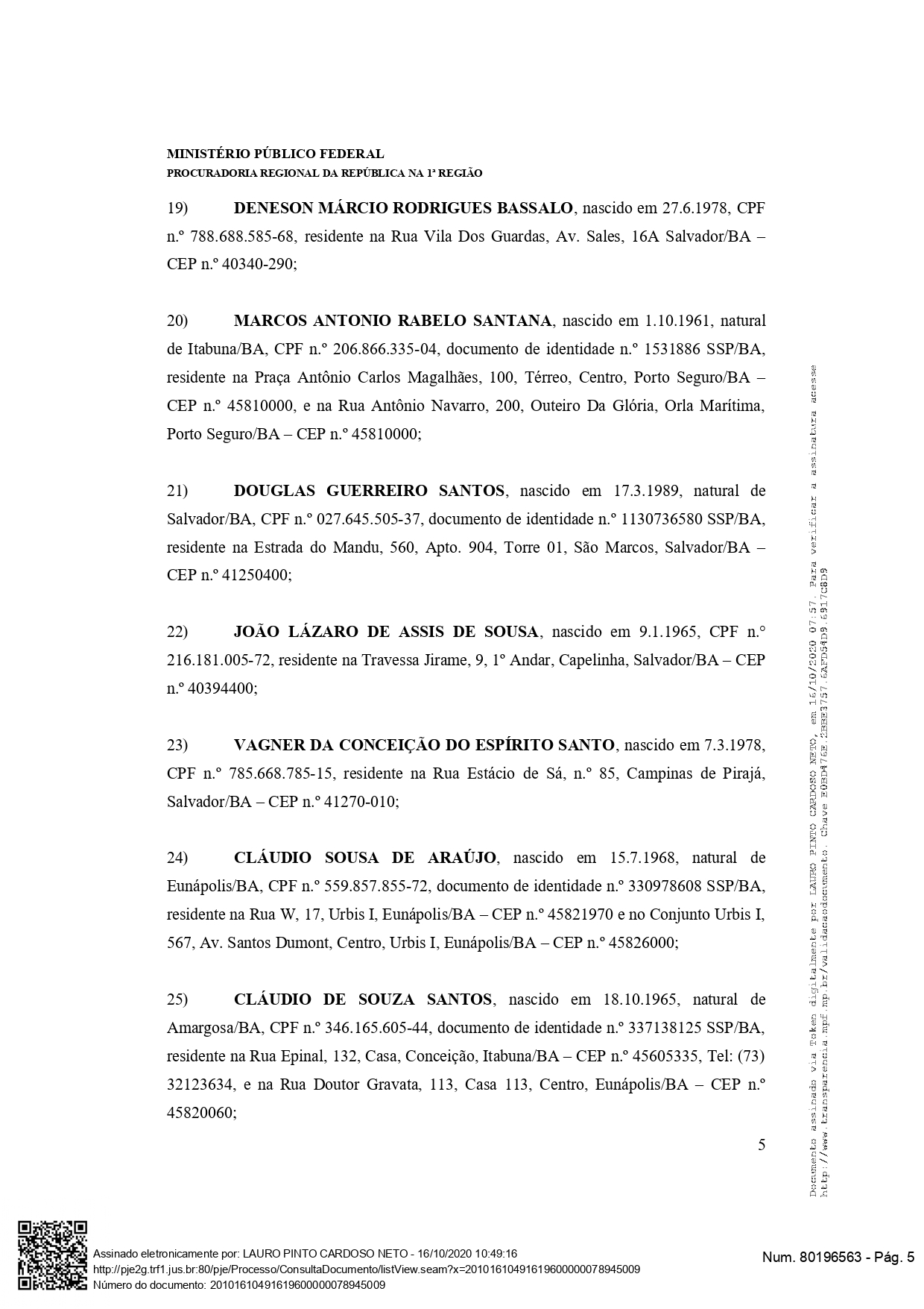Após os dois inquéritos que tramitaram na Polícia Federal, conjuntamente, com o MPF (Ministério Público Federal); o MPF, em conclusão dos inquéritos, formulou a opinião acusatória ‘opinio delicti’, ofertando ao Poder Judiciário a denúncia criminal, requerendo a condenação de todos os envolvidos, como agentes de crimes, tendo no topo da piramide criminal, o núcleo político, formado pela família Oliveira; sendo, os ex prefeitos José Robério Batista de Oliveira (Eunápolis), Cláudia Oliveira (Porto Seguro) e o atual prefeito de Santa Cruz Cabrália, Agnelo Santos, ainda, no esquema milionário que desvio recursos, aparecem os operadores do núcleo empresarial e de servidores, formados por uma série de outras pessoas que são apontados pelo MPF na acusação.