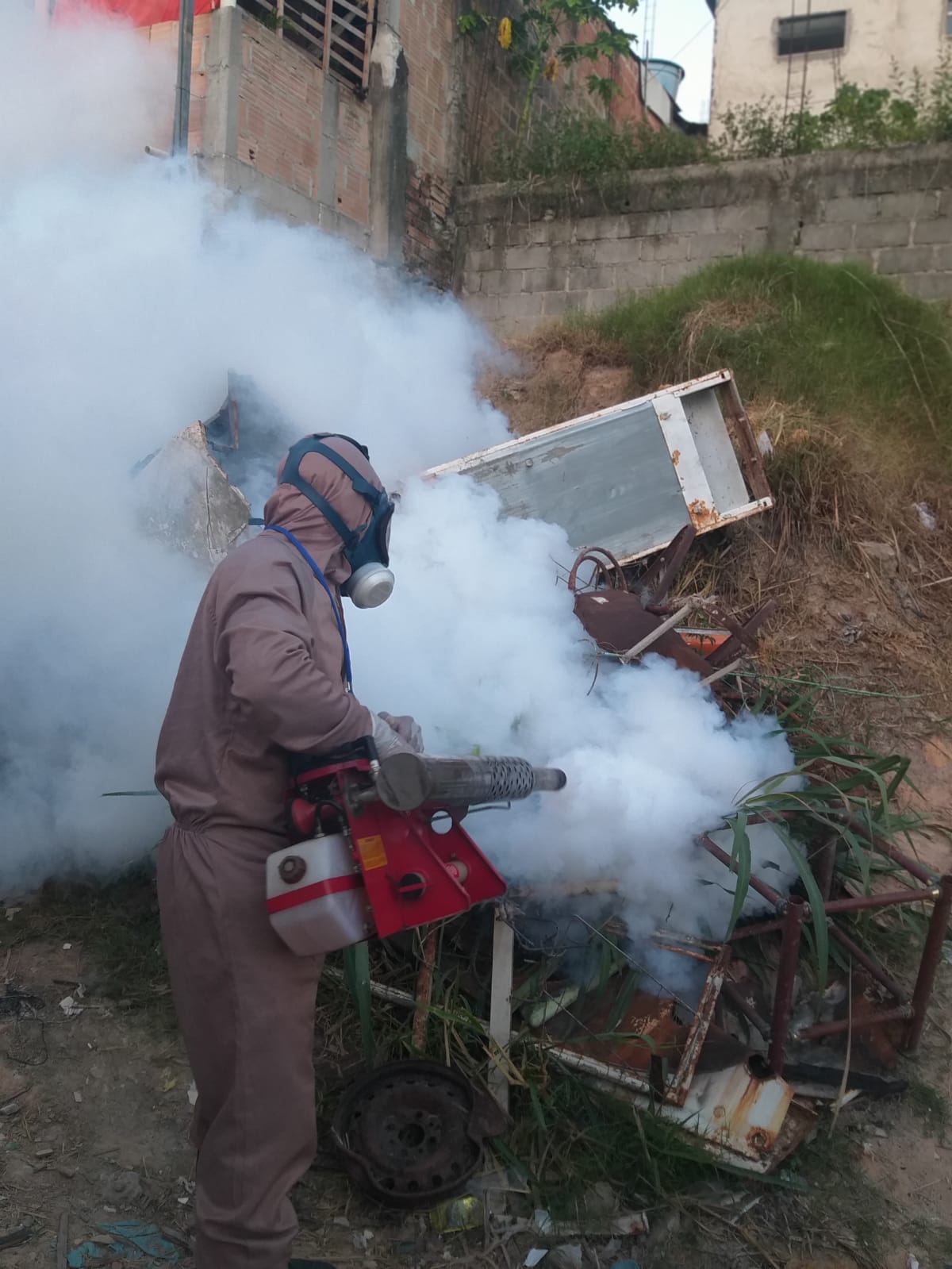 Durante as ações nos bairros e distritos, é realizado o bloqueio espacial, com a utilização de inseticidas, nas proximidades das residências identificadas com casos suspeitos.