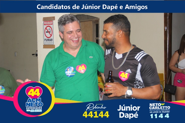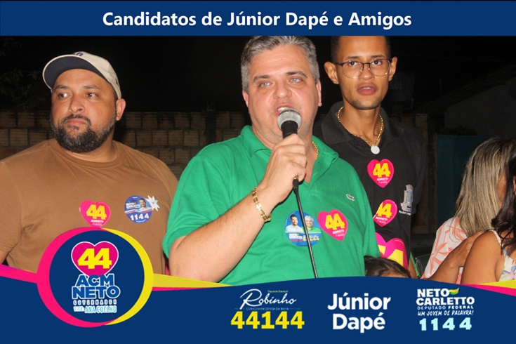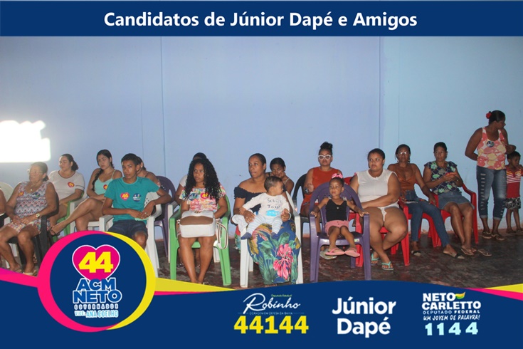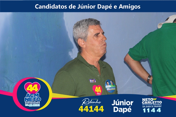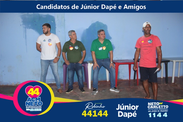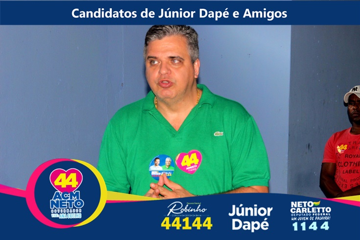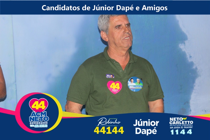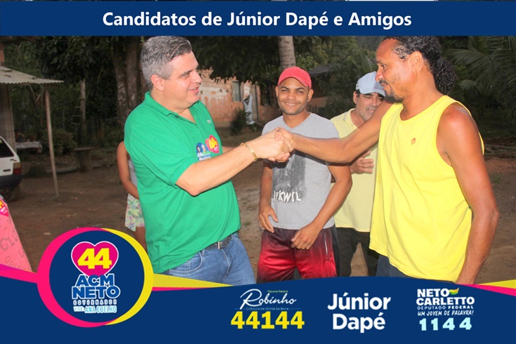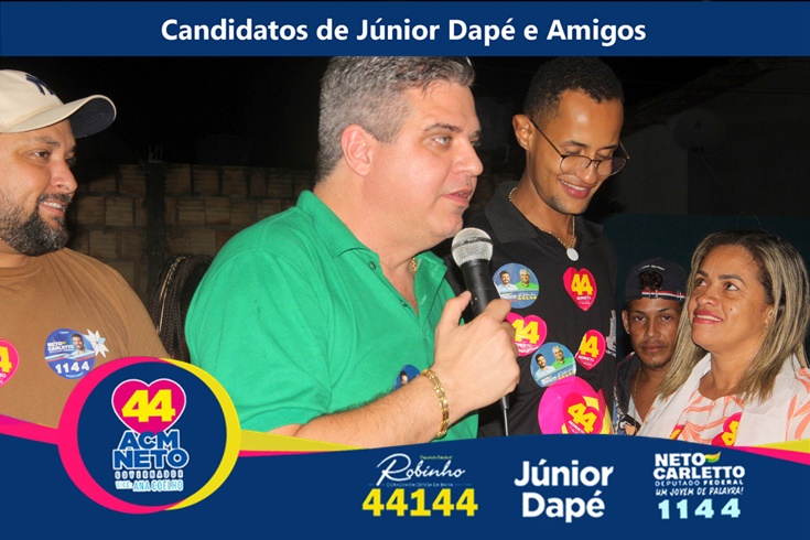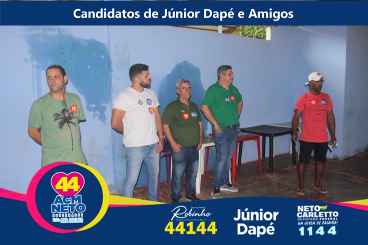 O evento político aconteceu no Bar do Paulão, que reuniu jovens, lideranças, e amigos, e correligionários. Júnior Dapé declarou o seu apoio ao candidato a governador da Bahia, ACM Neto, para o Senado Cacá Leão, para Deputado Federal Neto Carletto e o Deputado Estadual Robinho.