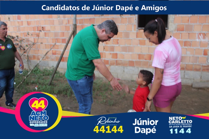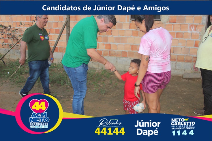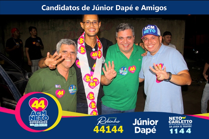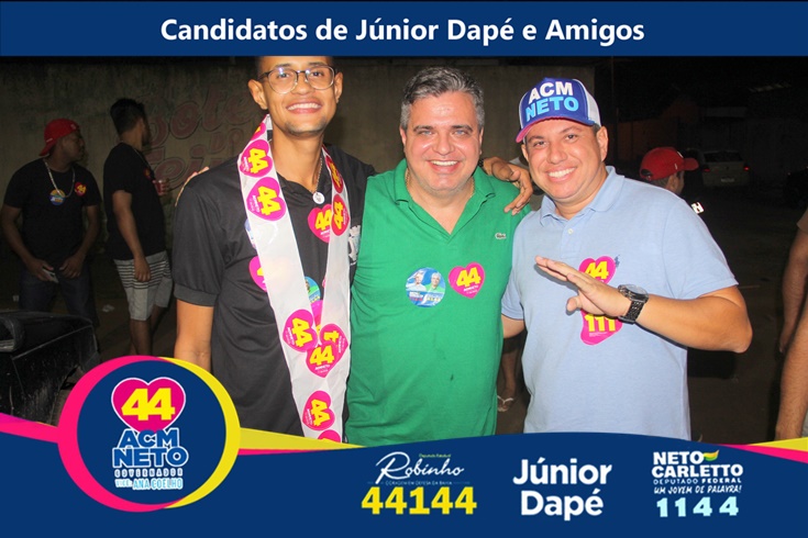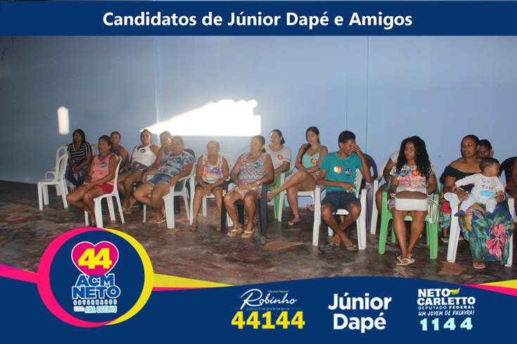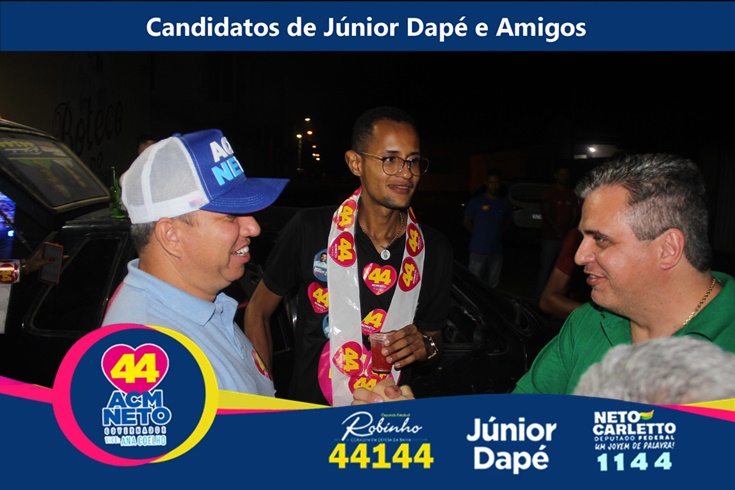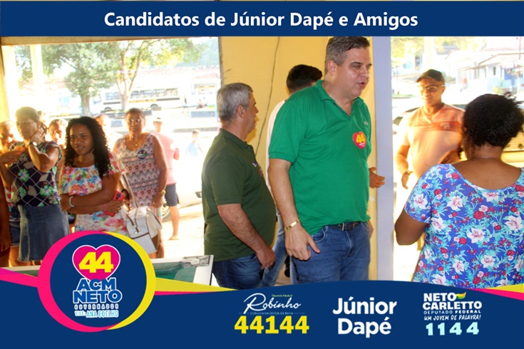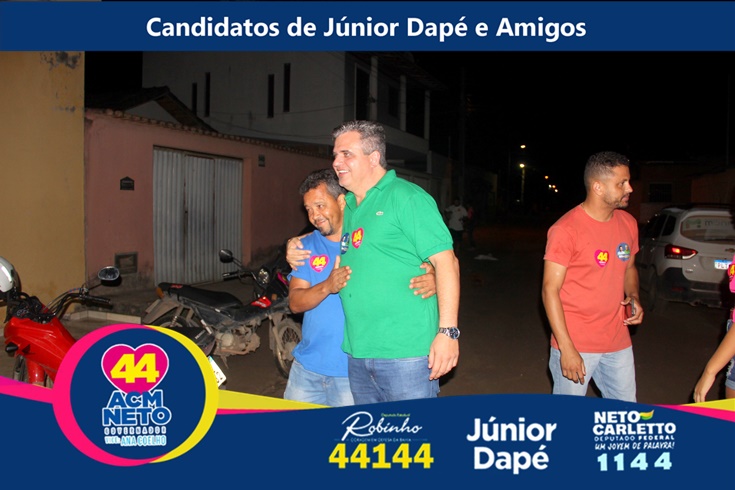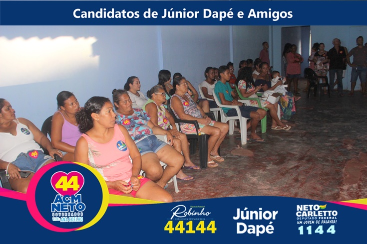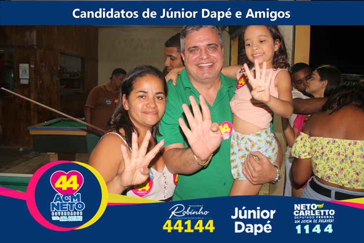 O evento político aconteceu no Bar do Paulão, que reuniu jovens, lideranças, e amigos, e correligionários. Júnior Dapé declarou o seu apoio ao candidato a governador da Bahia, ACM Neto, para o Senado Cacá Leão, para Deputado Federal Neto Carletto e o Deputado Estadual Robinho.