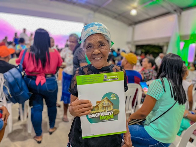 A primeira pessoa a receber de forma honrosa o título Maria Rosa de Jesus, de 104 anos, moradora do bairro Alecrim II. Esse marco significativo faz parte do programa Escritura Legal, estabelecido por meio do decreto 9.949/2021, publicado em 21 de abril de 2021, com o objetivo de regularizar a situação fundiária de famílias de baixa renda, sem qualquer custo, economizando-lhes cerca de R$ 10 mil por unidade familiar.