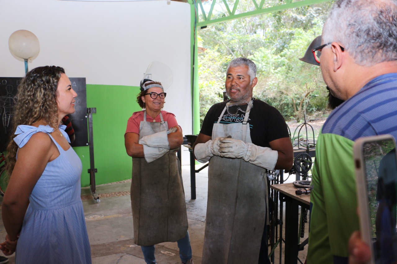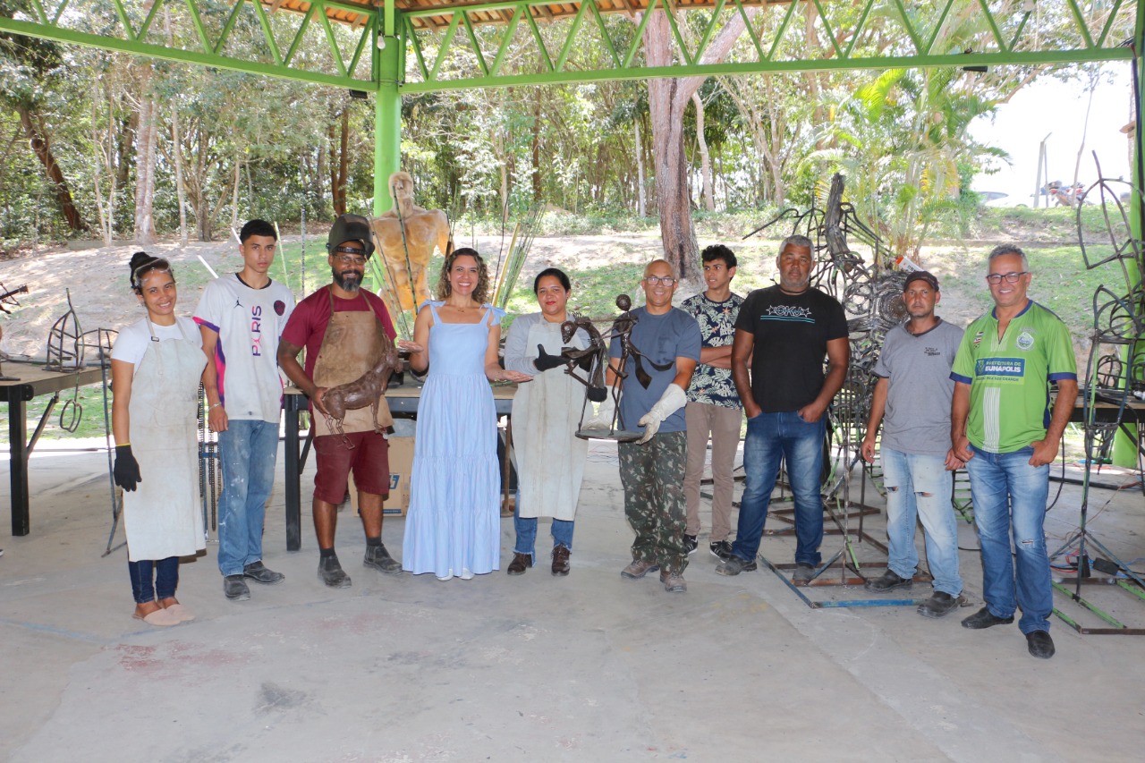 A prefeita de Eunápolis, Cordélia Torres, prestigiou na manhã desta quinta-feira (15) o curso de esculturas que está sendo promovido pela gestão municipal no Parque Ecológico Gravatá. O projeto pioneiro oportuniza qualificação, sem custos, para os cidadãos aprenderem a transformar material reciclado em monumentos que serão instalados em espaços públicos do município, garantindo modernização urbanística com arte produzida pelos próprios eunapolitanos.