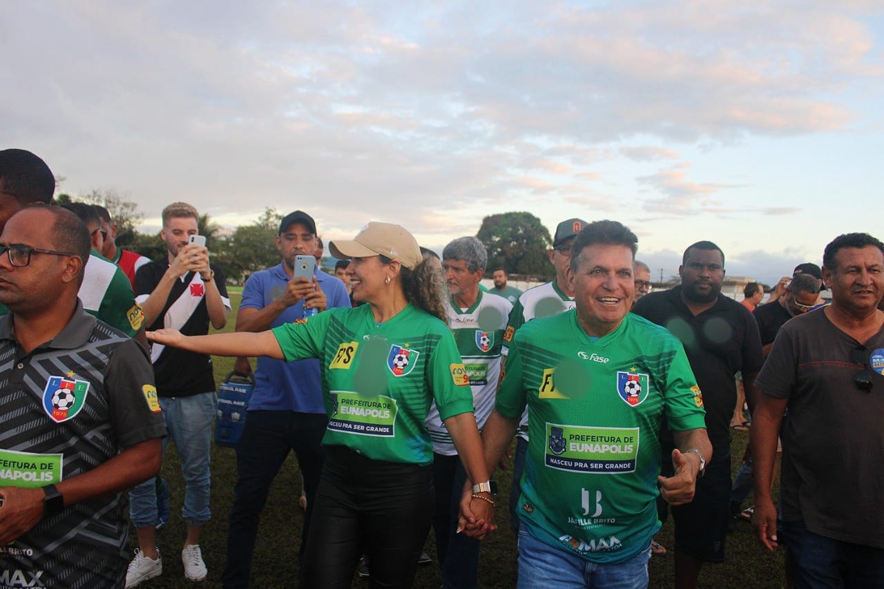 A prefeita de Eunápolis, Cordélia Torres, prestigiou na tarde de domingo (28), no Estádio Araujão, o último jogo da fase classificatória do Campeonato Intermunicipal de Futebol. Embora o resultado da partida não tenha sido favorável para a seleção eunapolitana, a equipe comandada pelo técnico Marcos Correia conseguiu a classificação para a próxima fase, sendo uma forte candidata ao título de vencedora do maior campeonato amador do Brasil.