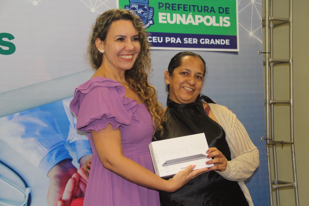 Dentre uma série de benefícios que vem sendo concedida aos agentes comunitários de saúde, mais uma conquista foi garantida pela gestão municipal na manhã desta sexta-feira (12) com a entrega de mais de 170 tablets de última geração para a categoria, oportunizando informatização e agilidade ao serviço de promoção à saúde realizado pelos profissionais, que receberam os modernos equipamentos das mãos da prefeita Cordélia Torres.