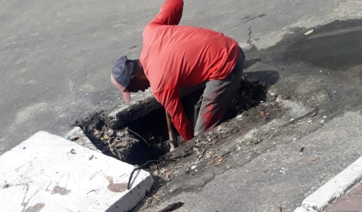 * E, no bairro Pequi, recuperação de pavimento em paralelepípedo, melhorias na rede de drenagem, limpeza de caixa e instalação de tampa, e demolição e construção de nova calçada no futuro Centro de Especialidades Municipal.